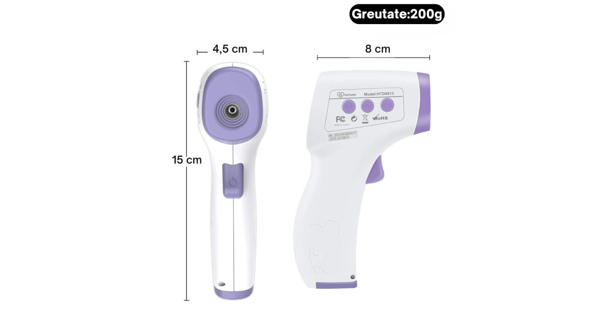 - 👶 Zwei Modi: Zur Messung der Körpertemperatur und der Oberflächentemperatur.