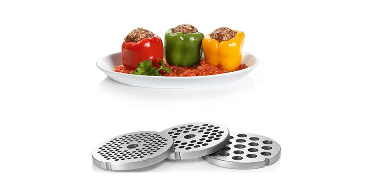 - 3 Lochscheiben in verschiedenen Größen: (3/4, 4,8 und 8 mm) Für die perfekte Mahlfeinheit 📏