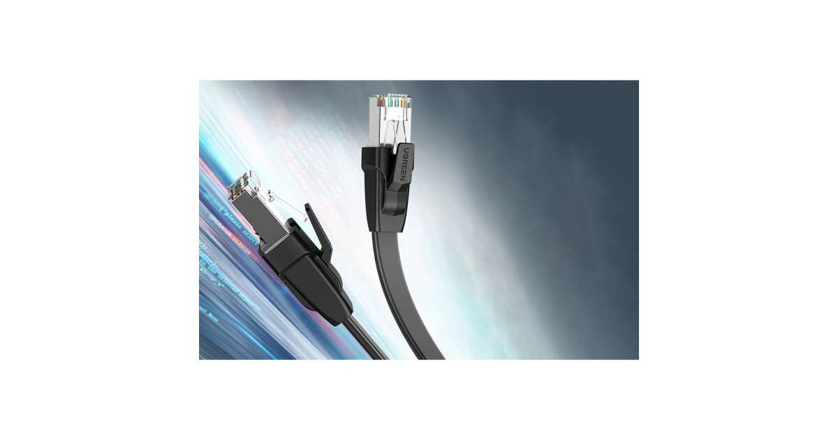 -UGREEN NW134 Flaches Netzwerkkabel mit Metallsteckern, Ethernet RJ45, Cat.8, U/FTP, 5 m (schwarz) Beschreibung