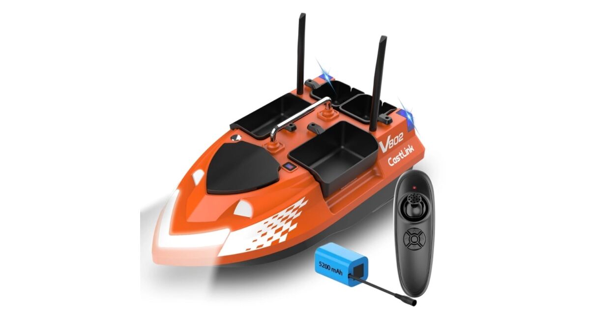 Dve nádržky na návnadu na zadnej strane vám umožňujú pripevniť háčik/vlasec a uvoľniť ho súčasne s návnadou. Je tiež užitočné vyhnúť sa zamotaniu vlasca. ŠPECIFIKÁCIE: • Farba: oranžová • Materiál: ABS plast, elektronické súčiastky • Kapacita batérie: 7,4 V 5200 mAh • Výdrž batérie: približne 2 hodiny • Diaľkové ovládanie 2,4 GHz • 2 výkonné motory 390 • 4 nádrže na návnady - nezávisle ovládané - celková kapacita max. 3 kg. • Rýchlosť: do 15 km/h • Ovládací dosah: približne do 500 m • Indikátor úrovne nabitia batérie • Čas nabíjania: približne 6 hodín • Batérie vysielača: 2 x 1,5 V AA (nie sú súčasťou balenia) • Rozmery: 52,7 x 26,4 x 50 cm • Hmotnosť: 2219 g BALENIE OBSAHUJE: • 1 x návnadová loďka iUni V802 • 1 x diaľkové ovládanie • 2x anténa • 1 x 7,4 V 5200 mAh batéria • 1 x napájací kábel z batérie • 1 x náhradná sada vrtúľ • 1 x používateľská príručka Dôležitá poznámka: Člny sú vybavené gyroskopickým senzorom, ktorý pomáha udržiavať smer a stabilitu na vode. Z tohto dôvodu nefungujú správne na súši. Ak sa ich pokúsite otestovať mimo vody, motory sa môžu zdať nepravidelne otáčať, zastavovať sa alebo nereagovať na povely. Nejde o chybu – ide o normálny režim prevádzky. Na vode gyroskop dostáva potrebnú spätnú väzbu a loď sa správa perfektne, čo zabezpečuje stabilnú a kontrolovanú navigáciu.