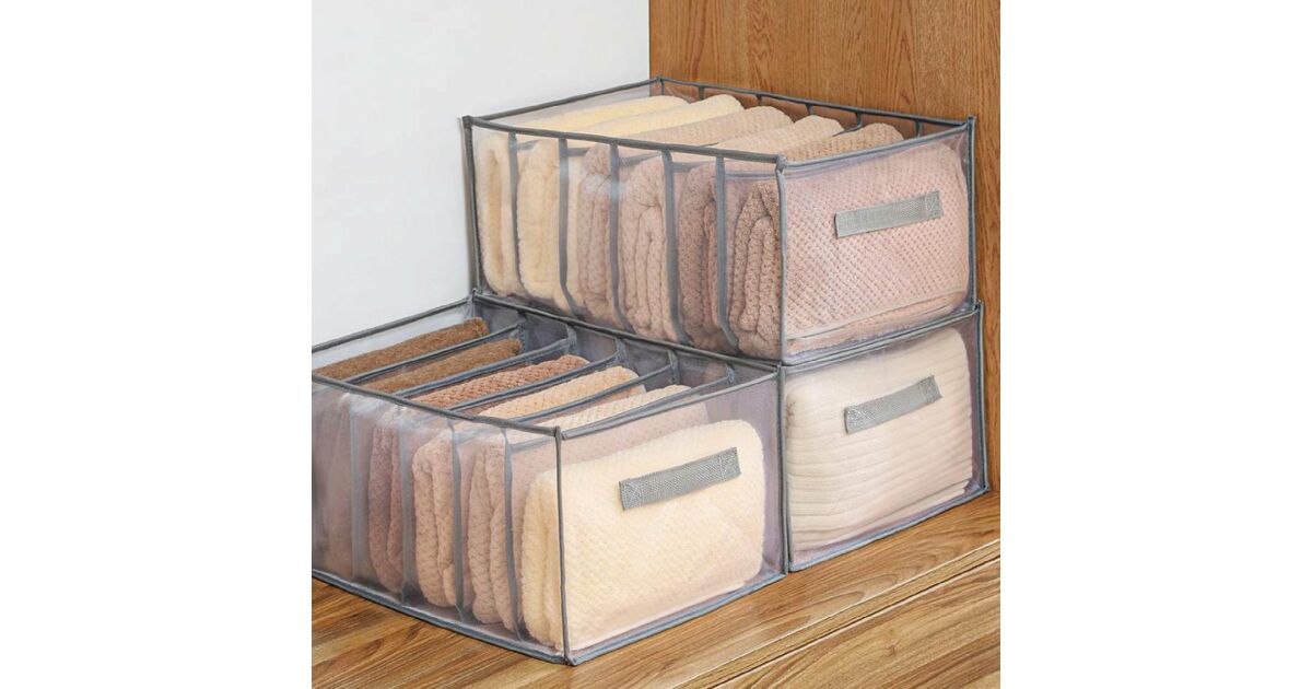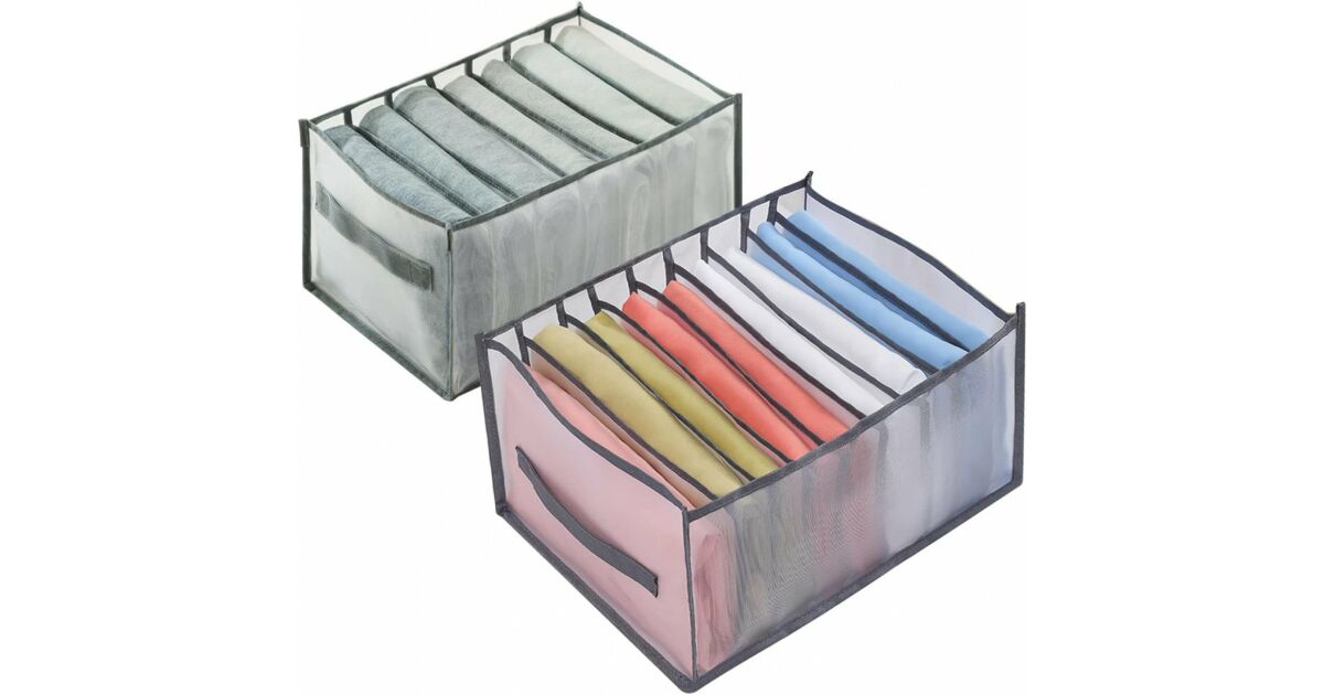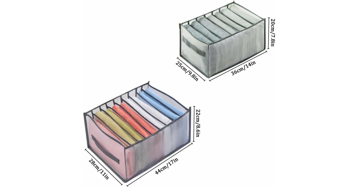 Halte deine Kleidung ordentlich und spare Platz mit diesem Set aus 2 praktischen Kleiderorganizer aus Nylon. Perfekt für Jeans, Hosen, Hemden, T-Shirts und andere Kleidungsstücke. Diese Organizer sind die ideale Lösung für ein ordentlicheres Zuhause.