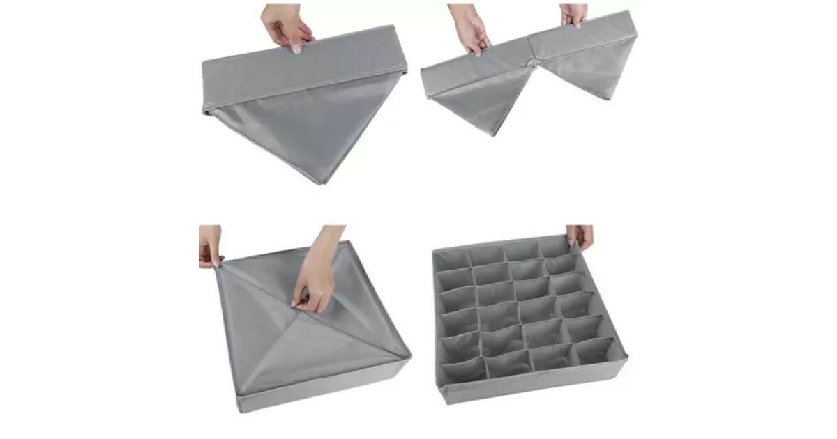 - 4 Aufbewahrungsboxen: Unterschiedliche Größen und Fachanzahl (24, 8, 7 und 6 Fächer), sodass du für jeden Wäschetyp den passenden Platz findest.