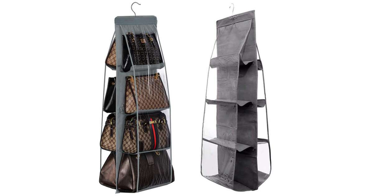 - 8 transparente Fächer zur Aufbewahrung von bis zu 16 Handtaschen