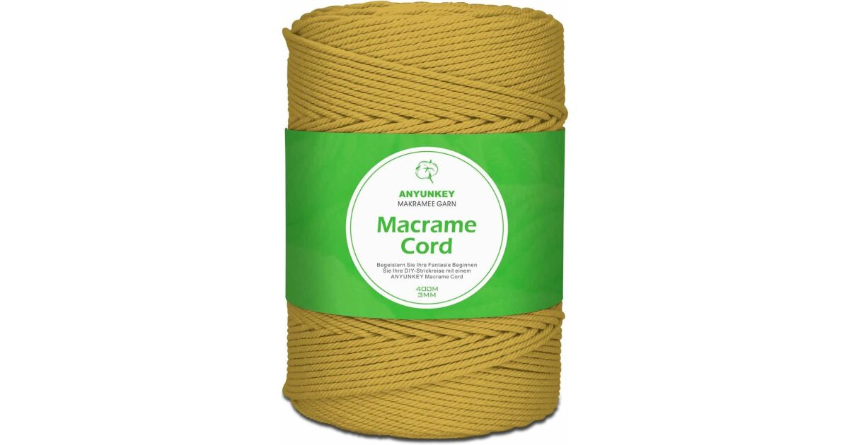 Anyunkey Makramee-Bastelrolle, Baumwolle, Senfgelb, 400 m x 3 mm Beschreibung