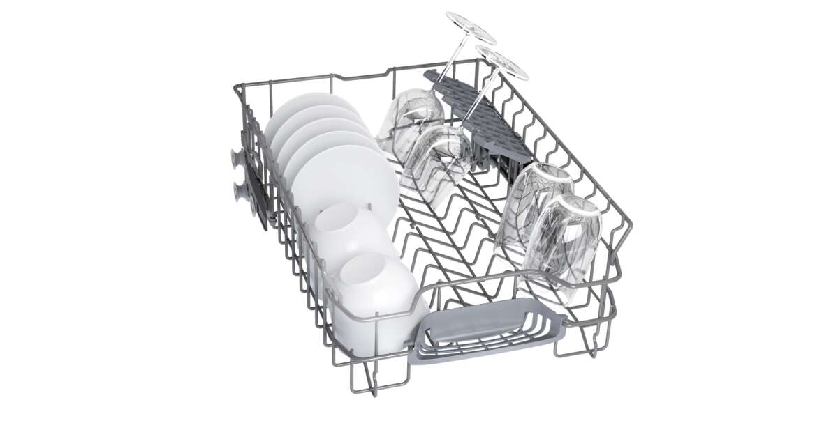 - Komfortabel: Höhenverstellbarer Oberkorb, leichtgängige Rollen am Unterkorb und weitere praktische Lösungen.