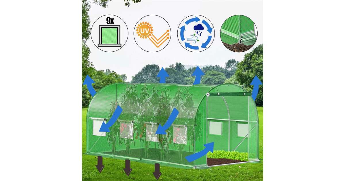 Dieses große, robuste Foliengewächshaus ist die ideale Wahl für alle Gartenliebhaber. Es bietet Ihren Pflanzen ausreichend Platz zum Wachsen und schützt sie vor Wind, Regen und Schädlingen. Es ist einfach zu montieren und zu warten, sodass Sie mehr Zeit in Ihrem Garten verbringen und weniger Zeit mit der Reinigung verbringen können.