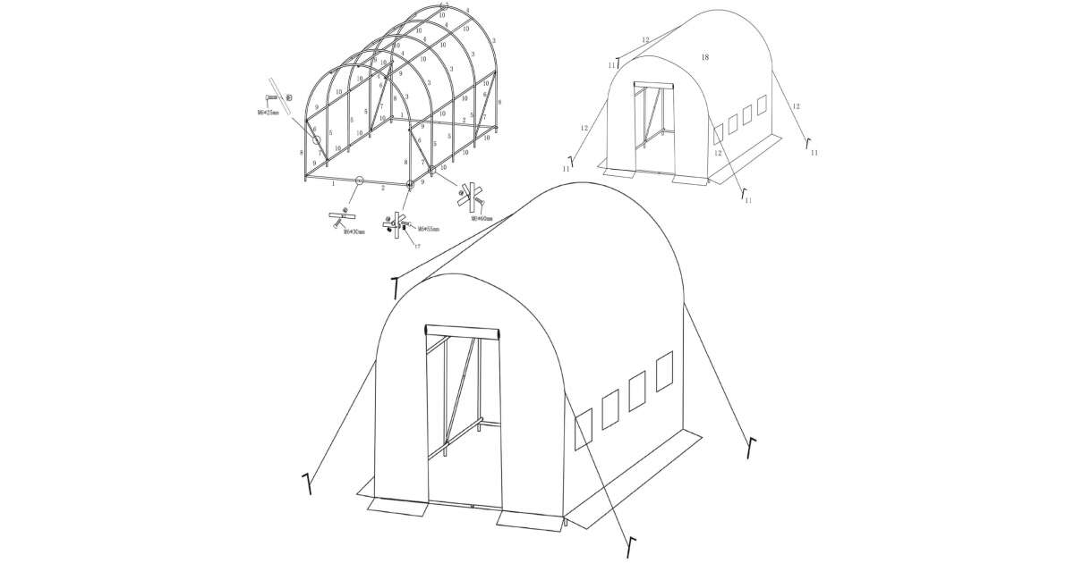 - Inhalt: Foliengewächshaus, Bedienungsanleitung, Montageteile, Stifte, Schnüre, Tasche