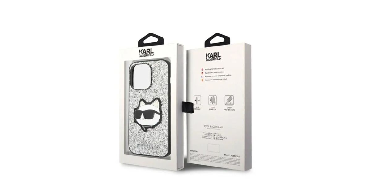 Etui Karl Lagerfeld Glitter Choupette Patch na iPhone 14 Pro Max - srebrne