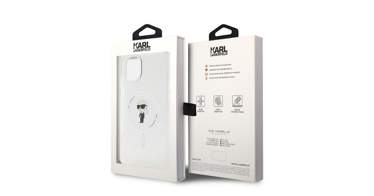 Karl Lagerfeld IML Ikonik MagSafeKolekcja IML Ikonik MagSafe to połączenie wyrafinowanego wyglądu i doskonałej jakości. Etui ochronne to wyjątkowa propozycja dla każdego, kto ceni sobie modne dodatki oraz chce zapewnić sobie stylowy wygląd. Z pokrowcem z kolekcji IML Ikonik MagSafe możesz podkreślić swój znakomity styl oraz przywiązanie do cenionej marki odzieżowej i jednocześnie pragną zapewnić najwyższy poziom ochrony swojego urządzenia.Wytrzymałe materiały i doskonałej jakości wykonanieDo produkcji tej kolekcju wykorzystano wyłącznie najwyższej jakości materiały. Do produkcji wykorzystano mocny i twardy poliwęglan (plecki), który zapewnia wzmocnienie tylnej części telefonu przed zbiciem. Elastyczny termoplastyczny poliuretan wykorzystano na bokach urządzenia, który zapewnia łatwy montaż i demontaż, a także chroni boki urządzenia przed wyszczerbieniem. Telefon wyposażony w ten pokrowiec pewnie leży w dłoni, jest niemal idealnie dopasowany do urządzenia, dzięki czemu zwiększa się jego bezpieczeństwo i odporność na wstrząsy, a także amortyzuje go przed uderzeniami. Pokrowce posiadają delikatnie podniesione brzegi, dzięki czemu ekran i soczewka aparatu są chronione przed zarysowaniem czy stłuczeniem. Case jest perfekcyjnie dopasowany, posiada wszelkie osłony na przyciski i wycięcia na porty.Charakterystyczny i elegancki wyglądEtui z kolekcji IML Ikonik MagSafe idealnie podkreśli wyjątkowy design Twojego iPhone'a dzięki zastosowaniu podobizny słynnego projektanta. Grafikę ułożono centralnie w środku pierścienia, mimo to są subtelne i perfekcyjnie komponują się z stylistyką całego pokrowca. Ozdoby zostały pokryte delikatną warstwą poliuretanu, który sprawia iż są one odporne na ścieranie, dzięki czemu pokrowce przez długi czas cieszą nienagannym wyglądem.Wygodne ładowanie telefonuKolekcja została wzbogacona o magnetyczny pierścień MagSafe, który jest kompatybilny z bezprzewodową ładowarką MagSafe, zapewniając szybkie i łatwe ładowanie. Od teraz zapomnij o zdejmowaniu etui aby naładować telefon - kolekcja umożliwia wygodne naładowanie baterii telefonu bez obaw o przypadkowe uszkodzenie aparatu.Produkt wyprodukowany na licencji marki Karl Lagerfeld.