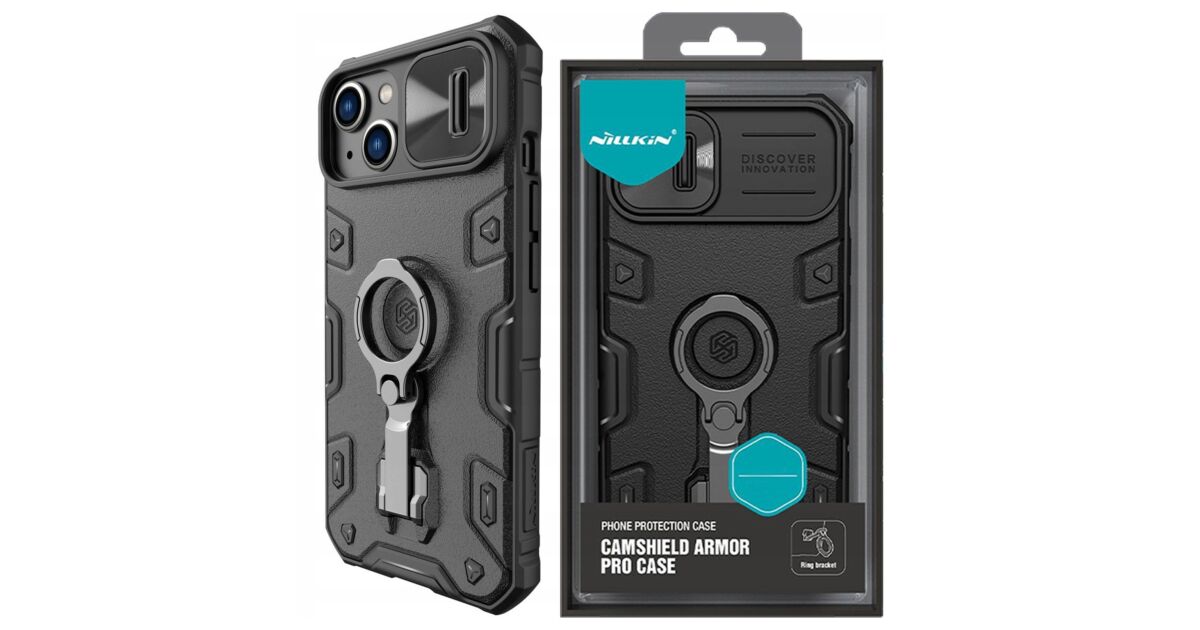 Nillkin CamShield Armor Pro Case etui iPhone 14 Plus pancerny pokrowiec z osłoną na aparat ring podstawka czarne