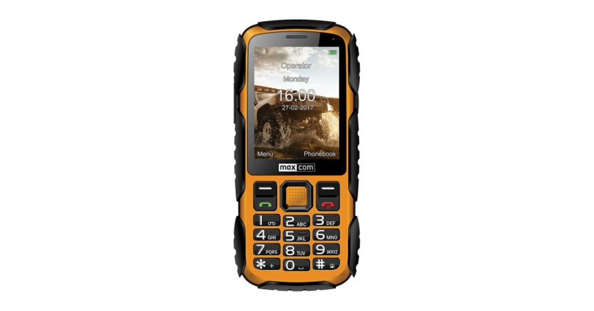 Maxcom MM920L Mobiltelefon, kartenunabhängig, stoß-, staub-, wasser- (IP67) und schlammresistent, gelb (mit ungarischem Menü) Beschreibung