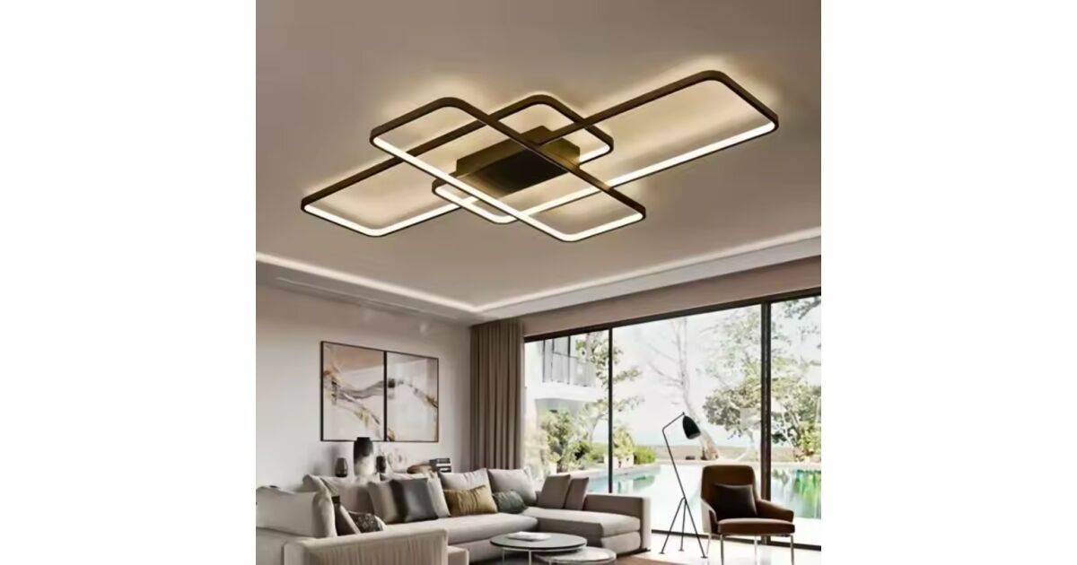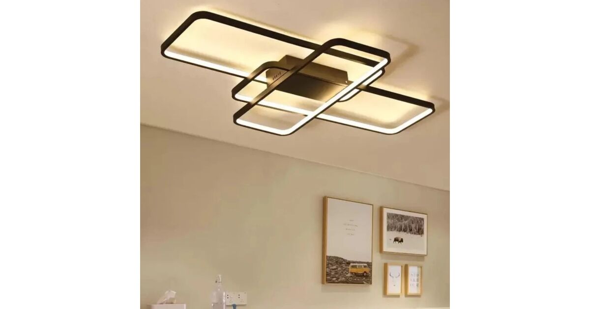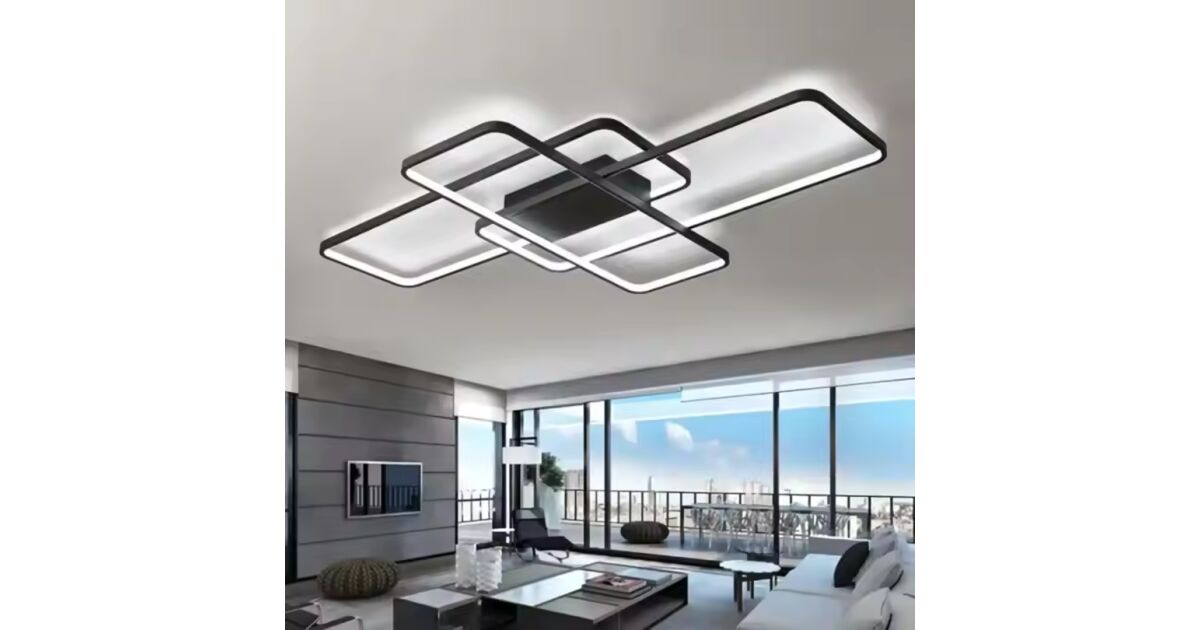 Peppe dein Zuhause mit diesem stilvollen, schwarzen LED-Kronleuchter auf, der moderne Geometrie und fortschrittliche Technologie vereint. Das künstlerische Design aus drei Rechtecken wird zum spektakulären Herzstück jedes Raumes.