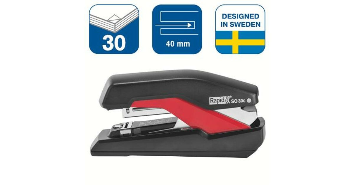RAPID "Supreme OmniPress S030c", 30 Blatt, Flachheftung, schwarz-roter Hefter Beschreibung