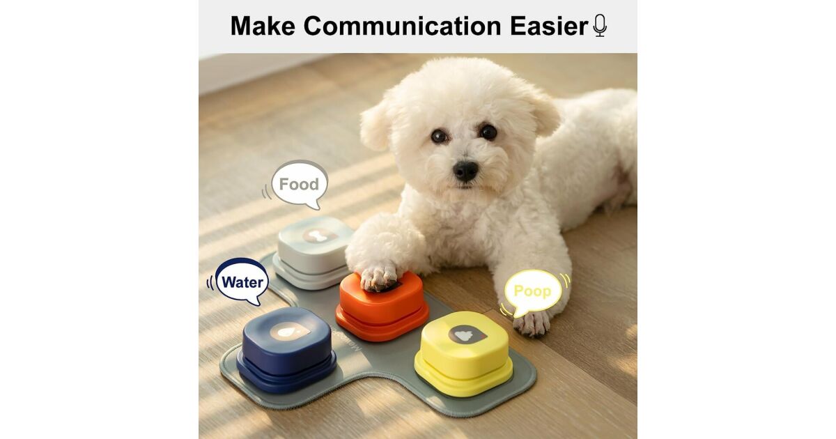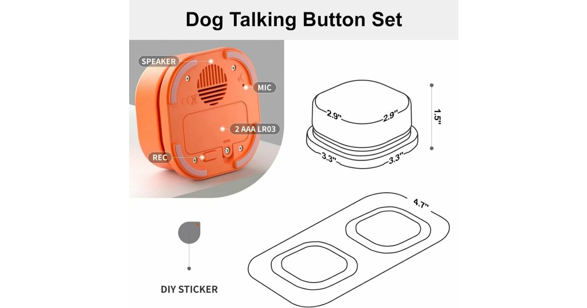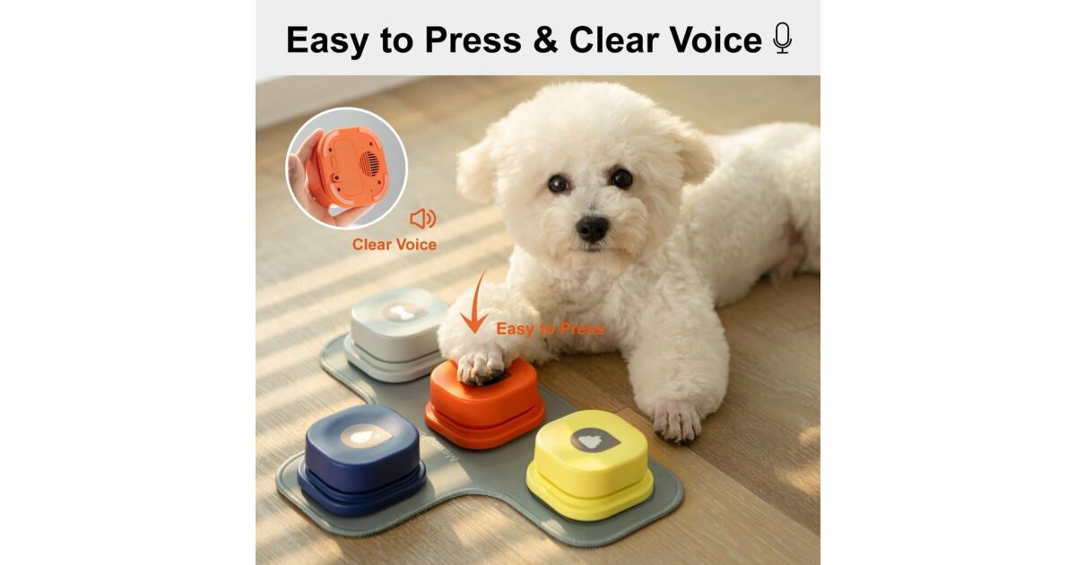 Der aufnehmbare Hundeknopf – ein interessantes Hilfsmittel für die Kommunikation mit Ihrem Haustier. Nehmen Sie beliebige Nachrichten oder Befehle auf und trainieren Sie Ihren Hund, indem Sie ihm helfen, seine Gedanken auszudrücken. Der Klettverschluss sorgt für guten Halt, hält den Knopf sicher auf der Matte und verhindert, dass er auf Boden oder Teppich verrutscht. Kommunikation leicht gemacht: Verbessert die Interaktion zwischen Besitzer und Haustier durch Sprachaufzeichnungsknöpfe. Sie werden erkennen, wie intelligent Ihr Hund ist, wenn er beginnt, Befehle anhand von Farbe, Knopfposition oder Stimme zu erkennen. Unsere Knöpfe sind mit hochwertigen Mikrofonen und Lautsprechern für klaren Klang und hervorragende Lautstärke ausgestattet. Einfache Bedienung: Drücken Sie die REC-Taste und starten Sie die Aufnahme einer bis zu 20 Sekunden langen Sprachnachricht. Sie hören das erste Signal. Lassen Sie die REC-Taste nach der Aufnahme los, und Sie hören ein Signal, das den Abschluss der Aufnahme anzeigt. Drücken Sie die obere Taste, um die Nachricht abzuspielen. Die Kommunikationsknopfmatte besteht aus hochwertigem Gummimaterial und ist daher leicht zu reinigen. Die Befestigung der Knöpfe mit Klettverschluss an der Matte verhindert ein Verrutschen auf dem Boden. Wird die Matte nicht benutzt, verhindern Silikonpads an der Unterseite des Knopfes ein Verrutschen. Sichere Materialien: Hergestellt aus strapazierfähigem ABS-Kunststoff und rutschfester Gummimatte für die Sicherheit und den Komfort Ihres Haustiers.