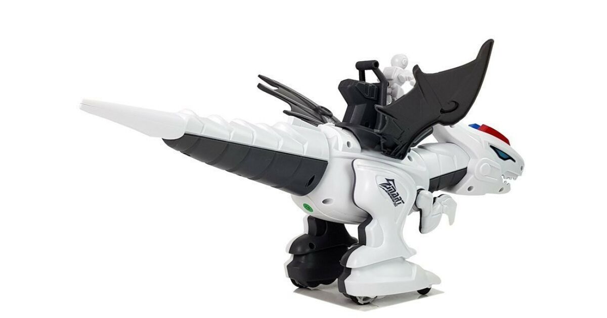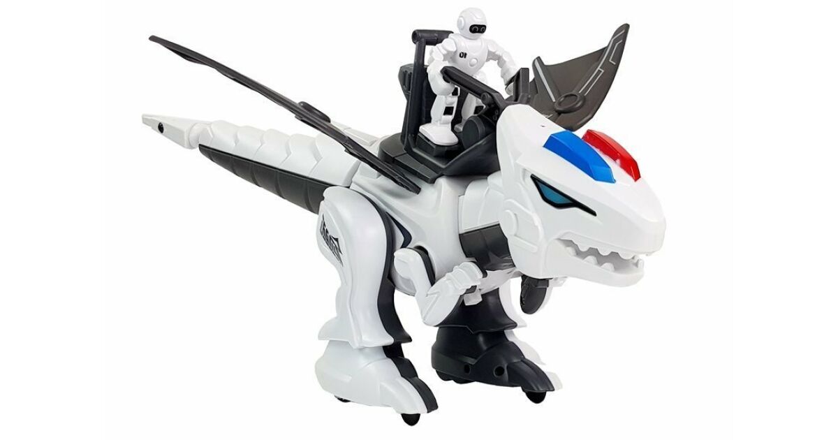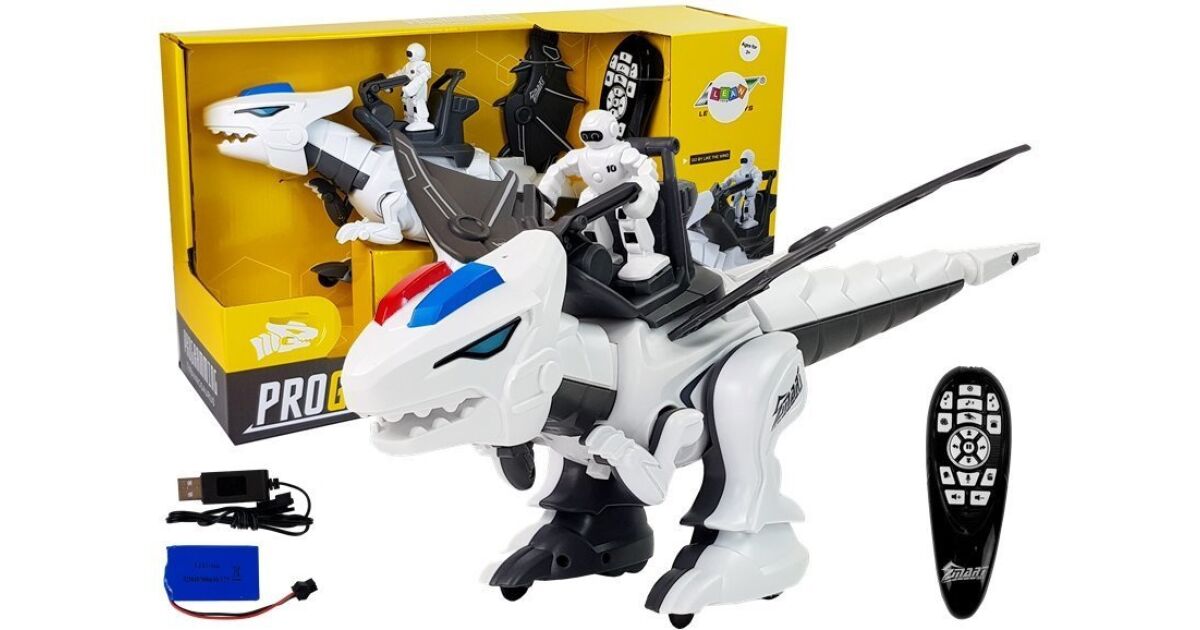Der Dinosaurier sieht sowohl gut aus als auch dynamisch. Er hat ein Maul mit starken Kiefern, kräftige untere Gliedmaßen und einen langen, peitschenartigen Schwanz. Auf seinem Rücken befindet sich eine menschliche Figur, die den Dinosaurier steuert. Das mechanische Tier hat auch robotische Elemente - seine Augen leuchten. Im Hintergrund ist Musik zu hören, der größte Vorteil des Dinosauriers ist die Programmierung. Der Dinosaurier wird mit einer Fernbedienung gesteuert, die bequem in die Hand passt. Mit ihr können Sie ihm Befehle geben, sie hat eine Aufnahmefunktion. Der Dinosaurier reagiert auf Funktionen wie Bewegen oder Tanzen. Eine Bedienungsanleitung ist im Set enthalten.