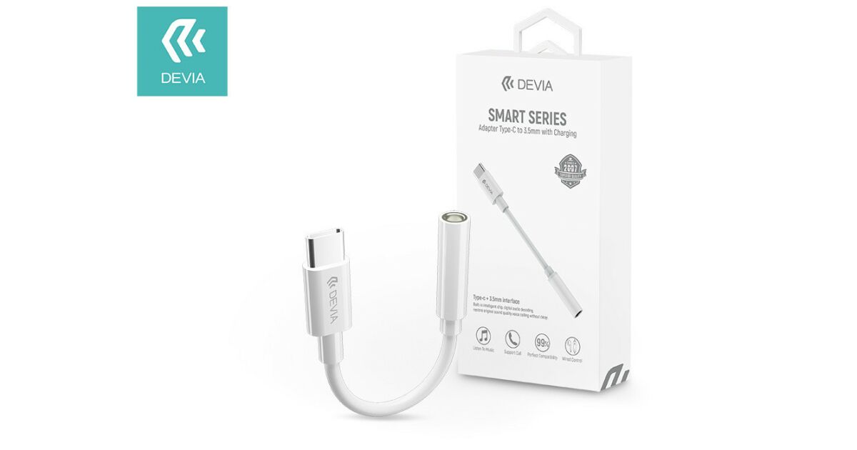 Devia Typ-C – 3,5-mm-Klinken-Audio-Adapter – Devia Smart Series Adapter Typ-C auf 3,5 mm mit Aufladung – Weiß Beschreibung