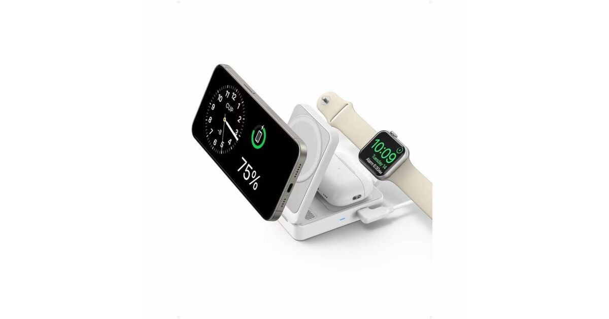 Diese kompakte und tragbare Ladestation lädt dein iPhone, deine Apple Watch und deine AirPods gleichzeitig auf und spart dir so Zeit und Energie. Dank der Kompatibilität mit der MagSafe-Technologie bietet sie ultraschnelles Laden mit 15 W.