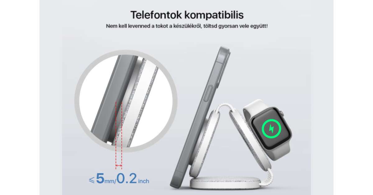 | Telefon kompatibilitás | Apple iPhone 8-14, Qi kompatibilis telefonok |