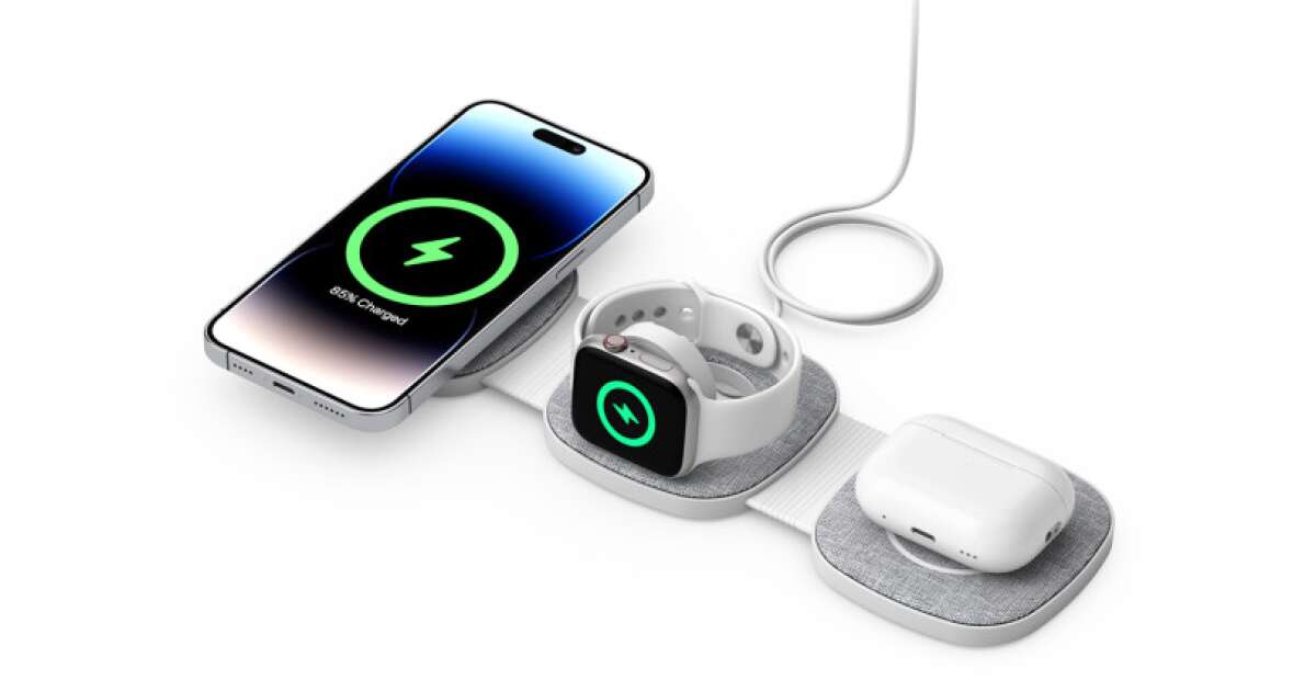 -Boost Faltbare 3-in-1 Wireless-Ladestation, Grau Beschreibung