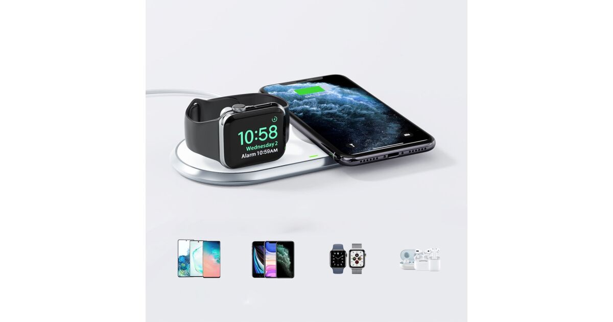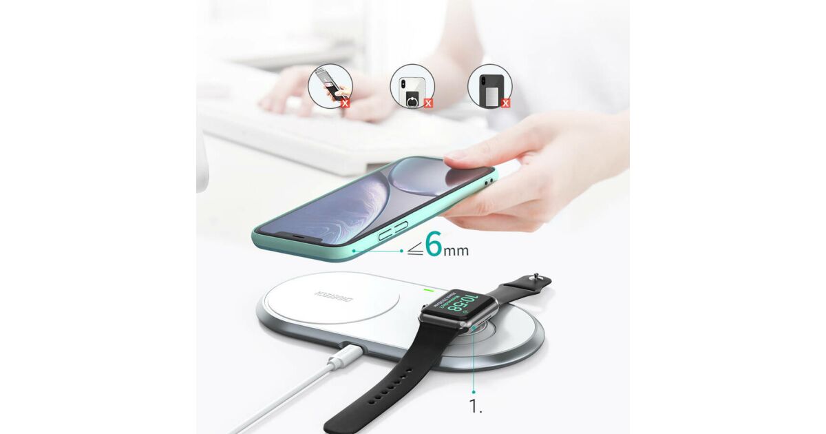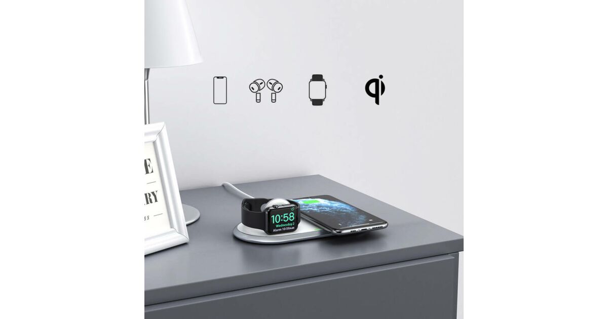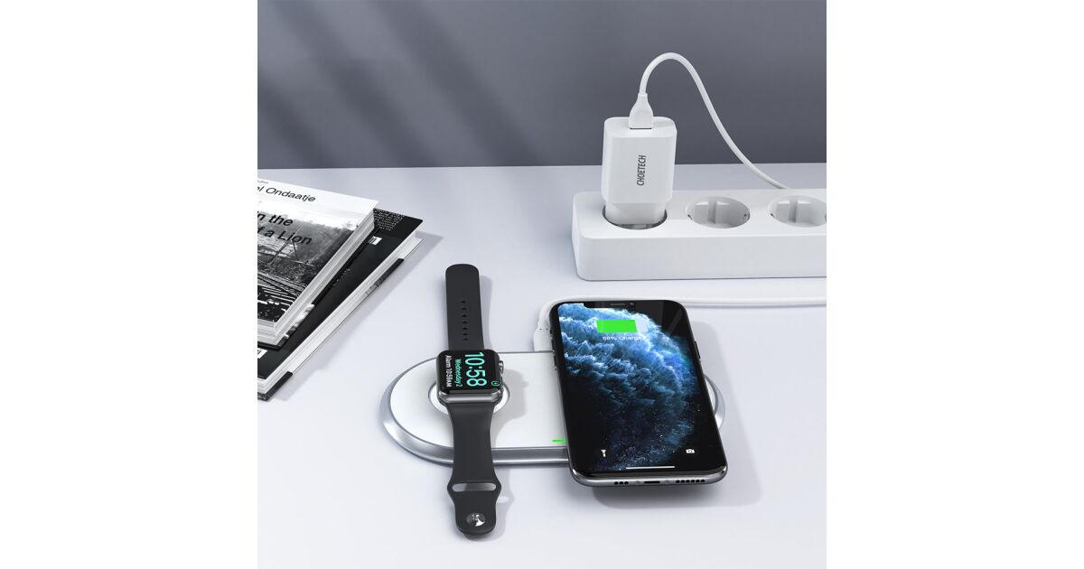 Caricabatterie wireless Choetech Qi 2in1 per smartphone / Apple Watch con supporto (MFI) USB tipo C bianco (T317)La scelta perfetta per gli appassionati di funzionalità. La stazione di ricarica alimenta in modalità wireless il tuo smartphone o le cuffie Airpods e il tuo Apple Watch, in una volta sola . Dimentica i cavi aggrovigliati e le lunghe attese che l'indicatore della batteria passi al 100%. Nel set si ottiene un caricabatterie e un adattatore con uno standard Quick Charge integrato , che ridurrà notevolmente il tempo di ricarica di un telefono compatibile con questo standard. Il regalo perfetto per gli amanti delle mele!Specifica:Marca: ChoetechModello: T317Porta: USB tipo CCorrente di ingresso: 5 V / 2 A, 9 V / 2 ACorrente di uscita: fino a 10 W o fino a 5 W (Apple Watch)Dimensioni: 700 x 70 x 140 mmPeso: 393 gColore biancoIncluso: cavo USB - USB tipo CI vantaggi più importanti del caricabatterie wireless Choetech T317:Adattato a molti dispositivi, incl. Telefoni compatibili con Qi, inclusi iPhone, cuffie wireless (inclusi AirPods) e Apple WatchÈ certificato MFi, quindi è compatibile con i prodotti AppleRicarica in modo efficiente telefoni e altri dispositivi portatili: carica con una potenza massima fino a 10 WIl pacchetto completo di cui hai bisogno. Il set include un adattatore CA che supporta QC 3.0Quando ricarichi il tuo Apple Watch, puoi attivare la modalità notturna grazie al supporto per orologio integratoProtegge la tua attrezzatura da danni causati da surriscaldamento, cortocircuito o sovraccaricoPerfettamente abbinato ad Apple Watch La parte di ricarica magnetica dell'Apple Watch è progettata per piegarsi in piano o aprirsi con un angolo di 90 gradi. Quindi puoi caricare il tuo smartwatch in due modi: appoggiarlo piatto o su un lato. L'orologio inizierà a caricarsi automaticamente. È interessante notare che il caricabatterie consente all'orologio di passare alla modalità notturna. Così il tuo Apple Watch ti dirà l'ora a qualsiasi ora del giorno o della notte, anche durante la ricarica.Nel prossimo futuro: ricarica rapida Sei di fretta e non vuoi aspettare che il tuo telefono si carichi? Il caricabatterie e l'alimentatore incluso supportano lo standard di ricarica Quick Charge 3.0. Se anche il tuo telefono è compatibile con questo standard, ridurrai notevolmente il suo tempo di ricarica.Per molti dispositivi Il caricabatterie Choetech può alimentare più di un dispositivo portatile. Puoi usarlo per caricare sia i tablet (incluso iPad Pro 12,9 "e più piccoli) sia i telefoni che possono essere caricati in modalità wireless (controlla le specifiche del tuo dispositivo per vedere se ha tale funzione). Tra loro:Samsung S20 FE, S21 Ultra 5G, S21 5G, S20 FE 5G, S21 + 5G, Note20 Ultra 5G, Note20 5G, Note20Huawei P40 Pro, P30 Pro, Mate 20 ProiPhone 13 Pro Max, 13 Pro, 13, 12, SE, 11 Pro Max, 11 Pro, 11, XS, XR, XS Max, X, 8 Plus, 8, 8 PlusRicarica senza problemi con la custodia Vuoi caricare in modalità wireless un telefono con una custodia? Non preoccuparti: il caricabatterie non teme le custodie per smartphone fino a 6 mm di spessore. Ricorda solo di non mettere cover magnetiche con una carta di pagamento o un anello di metallo sul caricabatterie wireless.Certificato e sicurezza Il caricabatterie wireless Choetech T317 è certificato MFi, il che significa che è completamente compatibile con gli accessori Apple. È anche sicuro per il tuo dispositivo. È realizzato in materiale PC refrattario, protegge da surriscaldamento, cortocircuito, sovratensione o sovraccarico.Un gadget da portare in viaggio Finiture eleganti, dimensioni compatte e peso ridotto rendono questo caricabatterie il gadget perfetto da portare in viaggio. Non devi preoccuparti di elementi mancanti: il set viene fornito con un cavo USB - USB di tipo C e un adattatore di rete con porta USB integrata.