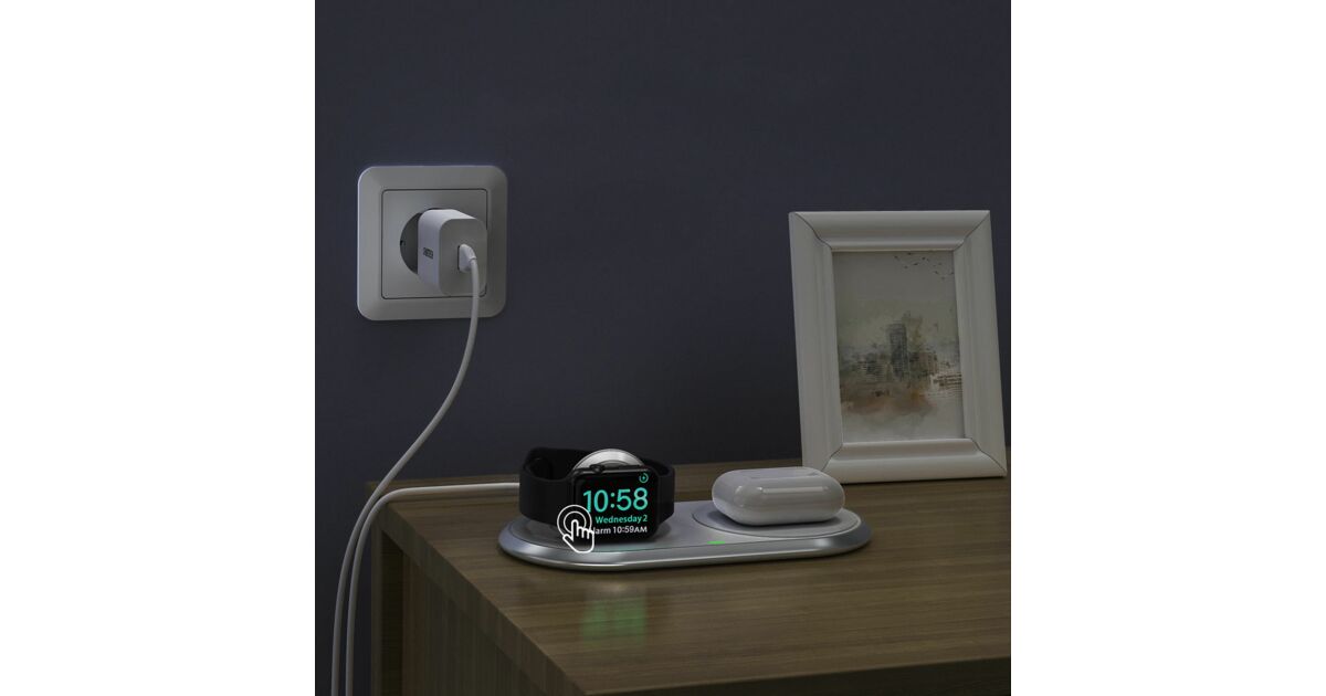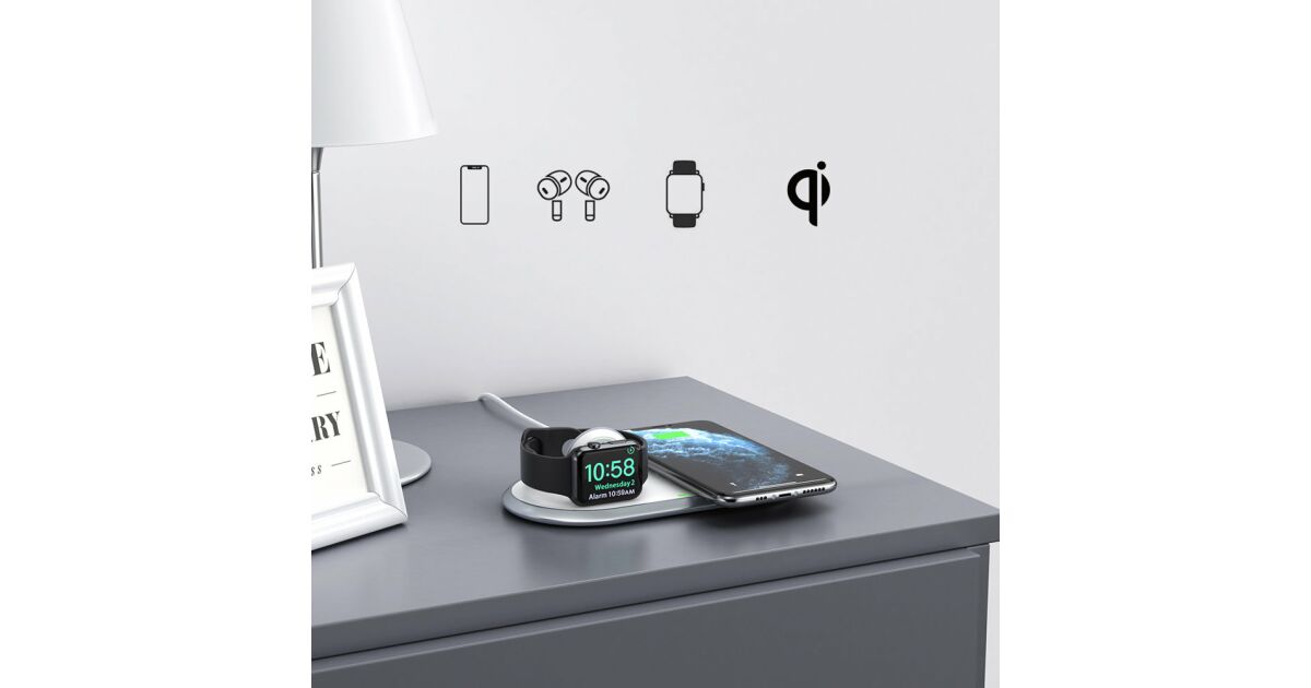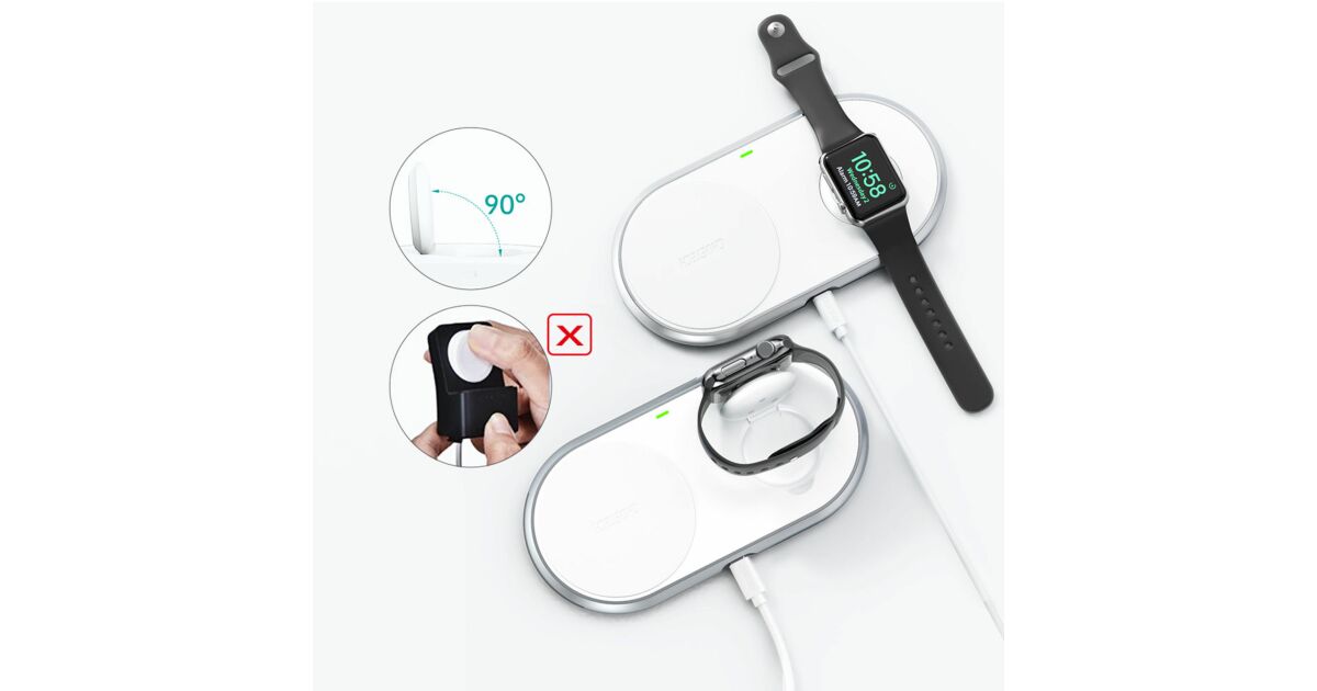 Choetech ładowarka bezprzewodowa Qi 2w1 do smartfonów / Apple Watch ze stojakiem (MFI) USB Typ C biały (T317)