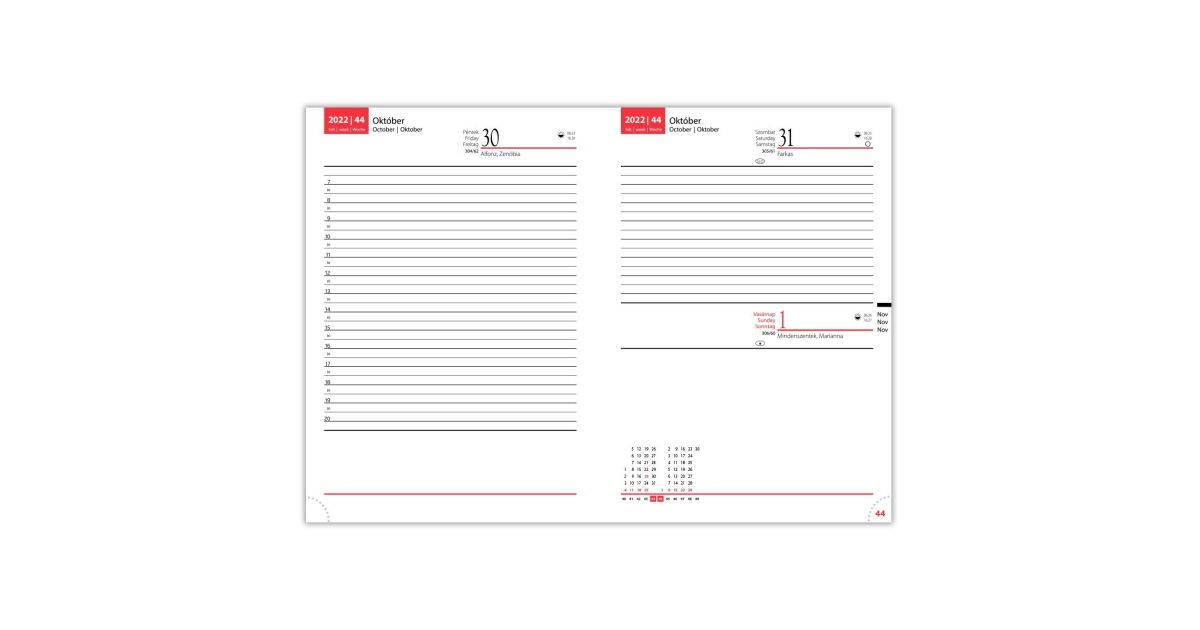 - Tageseinteilung: Leicht zu überblicken, mit ausreichend Platz für Notizen für jeden Tag.