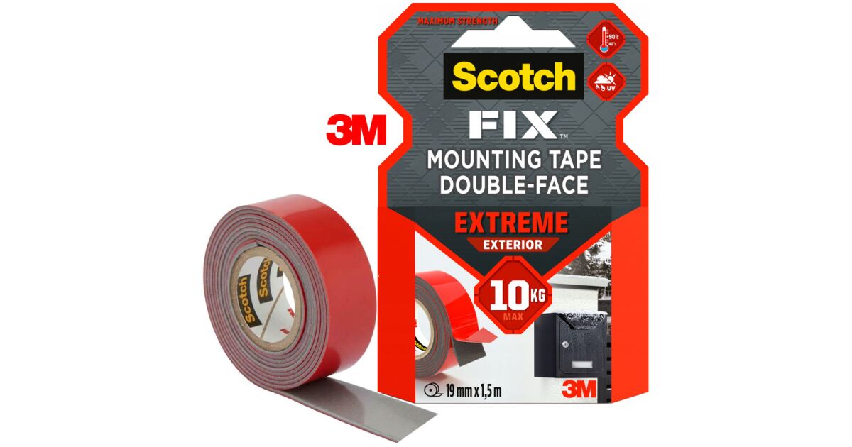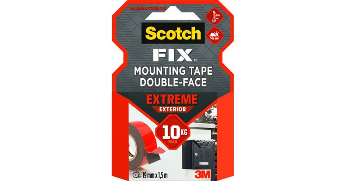 Klebeband, doppelseitig, extra stark, außen, 19 mm x 1,5 m, 3M SCOTCH "Extreme Exterior" - 1,5 m/Stück Beschreibung