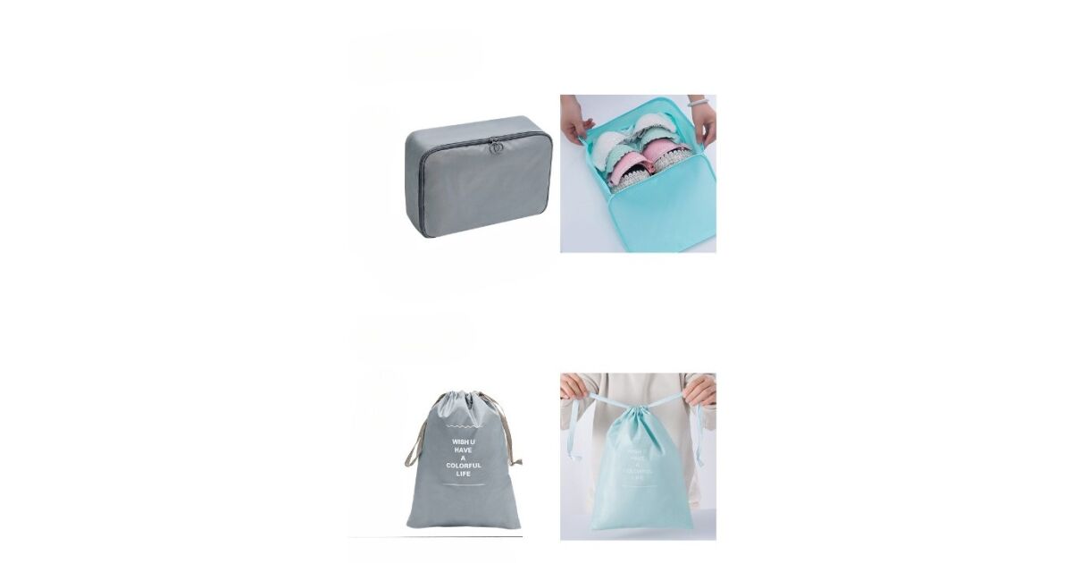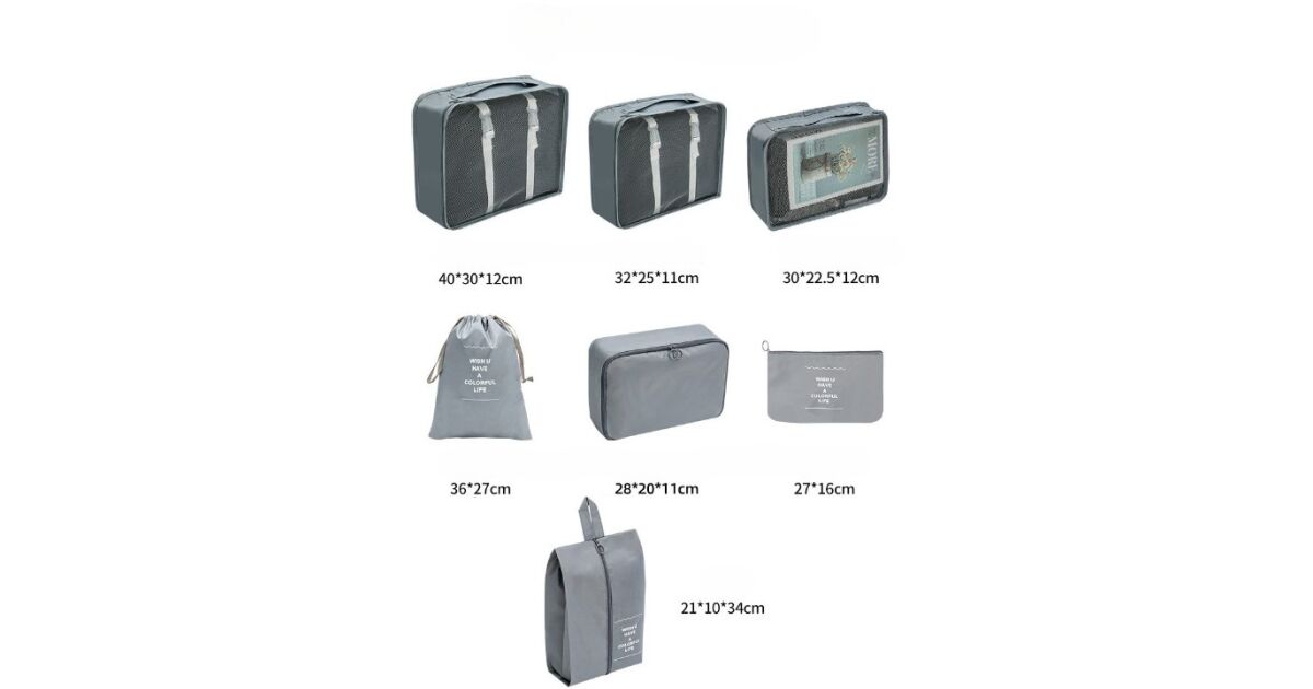7er-Set Reisetaschen, klappbar, zur Aufbewahrung, komprimierbar, 7 Größen, wasserdicht, Netzdesign, faltbar, stabile Griffe, Doppelreißverschluss, grau Beschreibung