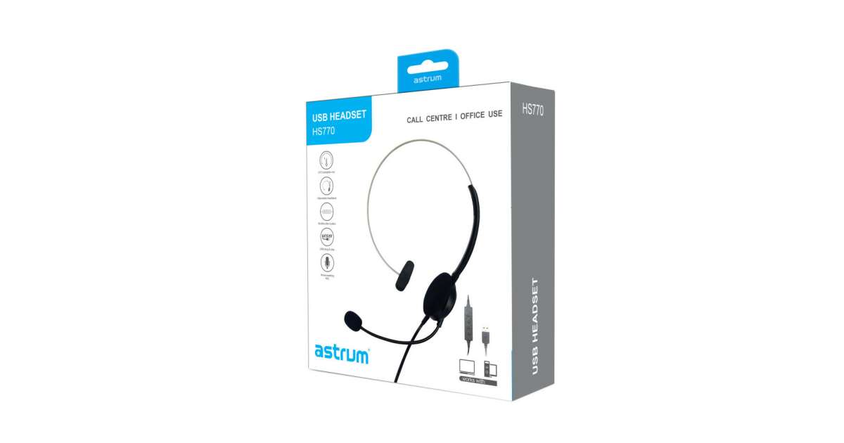 Astrum HS770 Callcenter-USB-Headset mit verstellbarem Mikrofon mit Geräuschunterdrückung und weichen Ohrpolstern Beschreibung