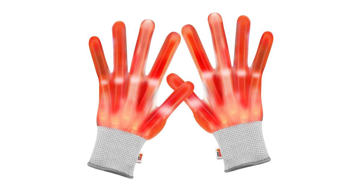 LED-Handschuhe für Erwachsene, Linomag®, 3 Beleuchtungsmodi, Röntgeneffekt, Rot Beschreibung