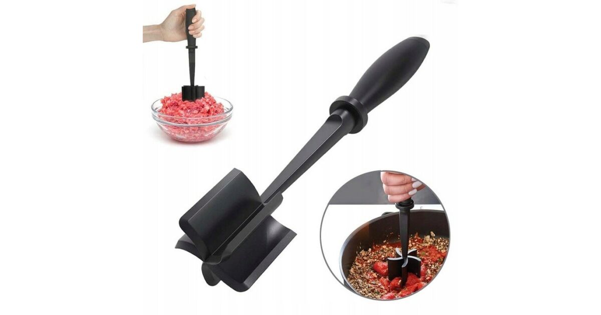 Manueller Fleischwolf, Flippy, mit Klinge zum Zerkleinern und Mischen von Fleisch, 28 x 6 cm, mit 5 gebogenen Klingen, hitzebeständig, multifunktional, langlebiger Kunststoff, schwarz Beschreibung