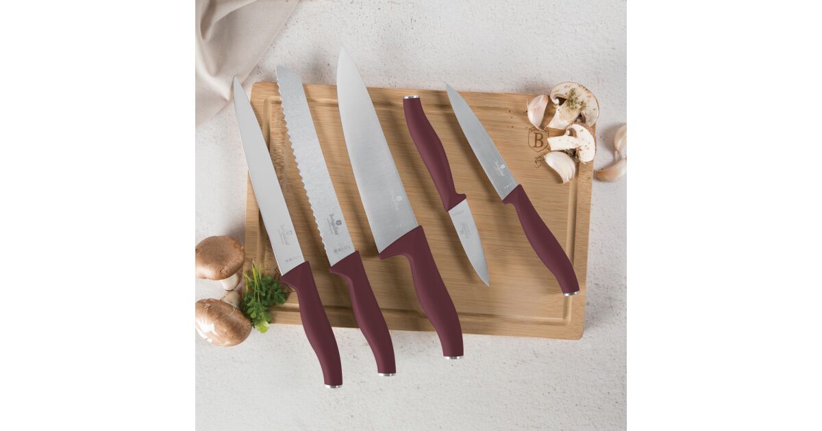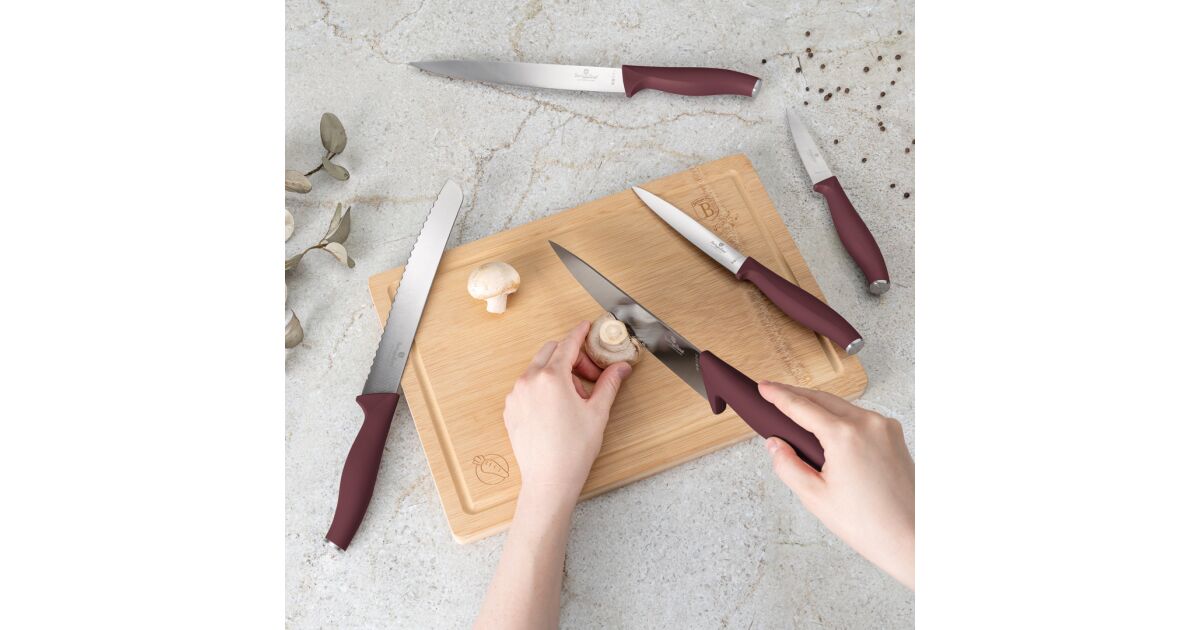 Berlinger Haus BH-2965 Leonardo Collection 6-teiliges Messerset mit Bambusschneidebrett - Bordeaux