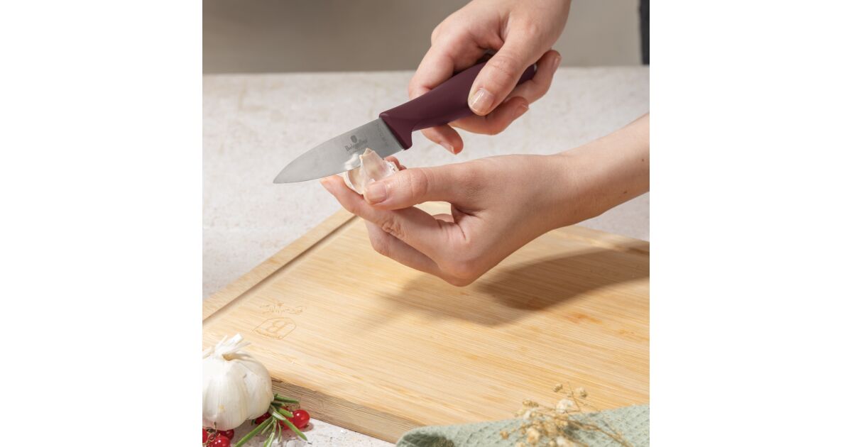 Merkmale: - Material: rostfreier Stahl - Rostfreier Stahl - Kochmesser 20 cm aus rostfreiem Stahl - Schneidemesser 20 cm - Allgemeines Messer 12,5 cm - Schälmesser 9 cm - Schneidebrett aus Bambus - Farbe: mattes Burgunderrot - Hochwertiger rostfreier Stahl - Hitzebehandelte Klinge - Ergonomischer Soft-Touch-Griff - Langlebige Klinge - Fingerschutz - Elegantes Design