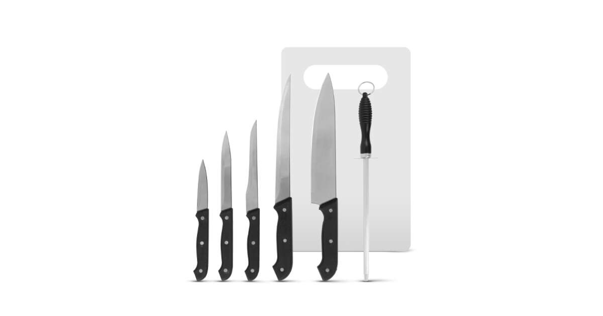 Dieses 7-teilige Küchenmesser-Set ist für alles gerüstet! Schneiden, tranchieren, hacken und schälen Sie mühelos dank der hochwertigen Edelstahlklingen. Die unterschiedlich großen Messer sind ideal für alle Aufgaben, von Fleisch bis Gemüse. Das Set enthält außerdem ein praktisches Schneidebrett und einen Schärfer, damit Ihre Messer immer scharf bleiben. ✨