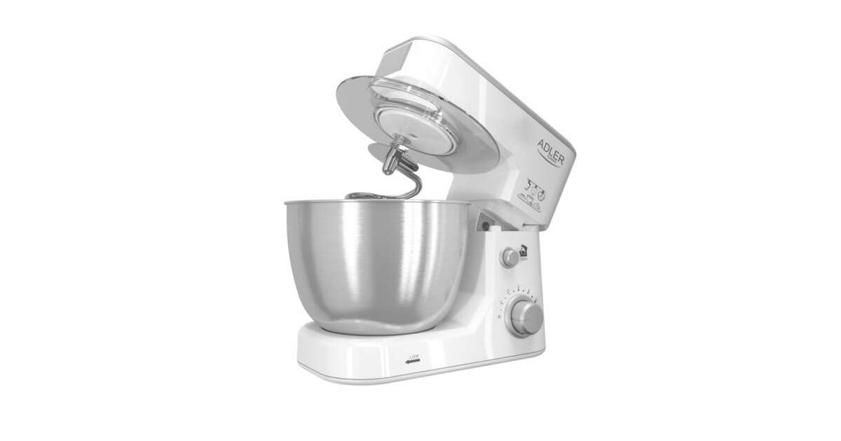 Planetenmixer Adler AD4216, 1000 W, 6 Geschwindigkeiten, Schüsselkapazität 4 l, Weiß/Edelstahl Beschreibung