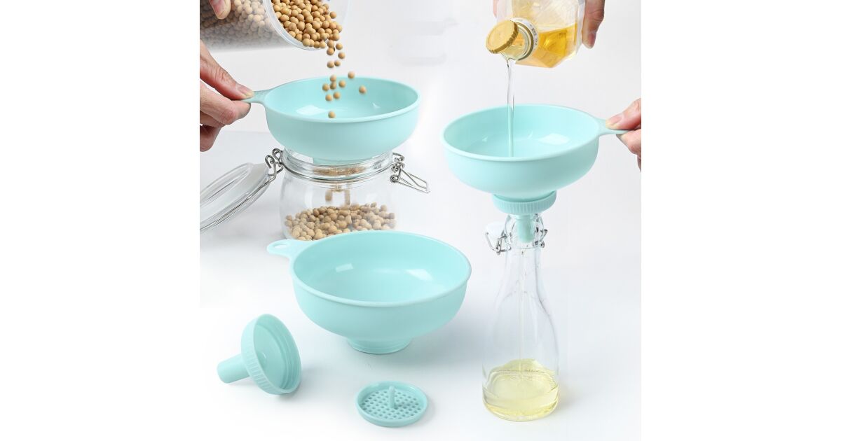 Dieser praktische 3-in-1 Trichter revolutioniert die Küchenarbeit! Er vereint drei Funktionen in einem einzigen Produkt: Er eignet sich sowohl zum Gießen von Flüssigkeiten, zum präzisen Dosieren als auch zum Filtern. Er spart Zeit und Platz und hilft, die Küche sauber zu halten.