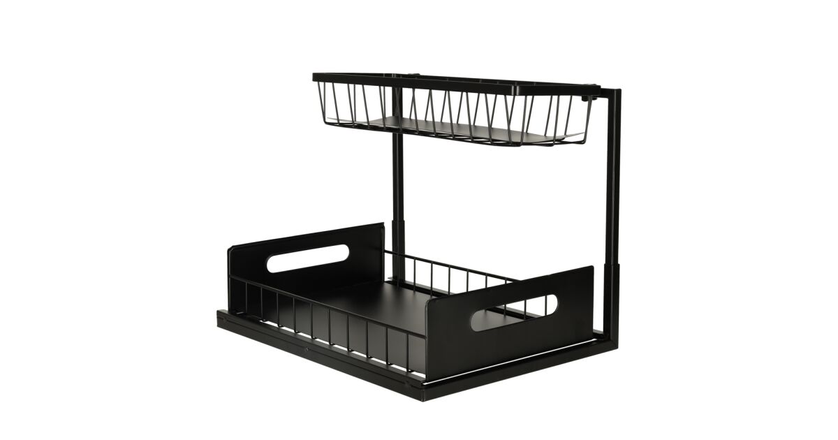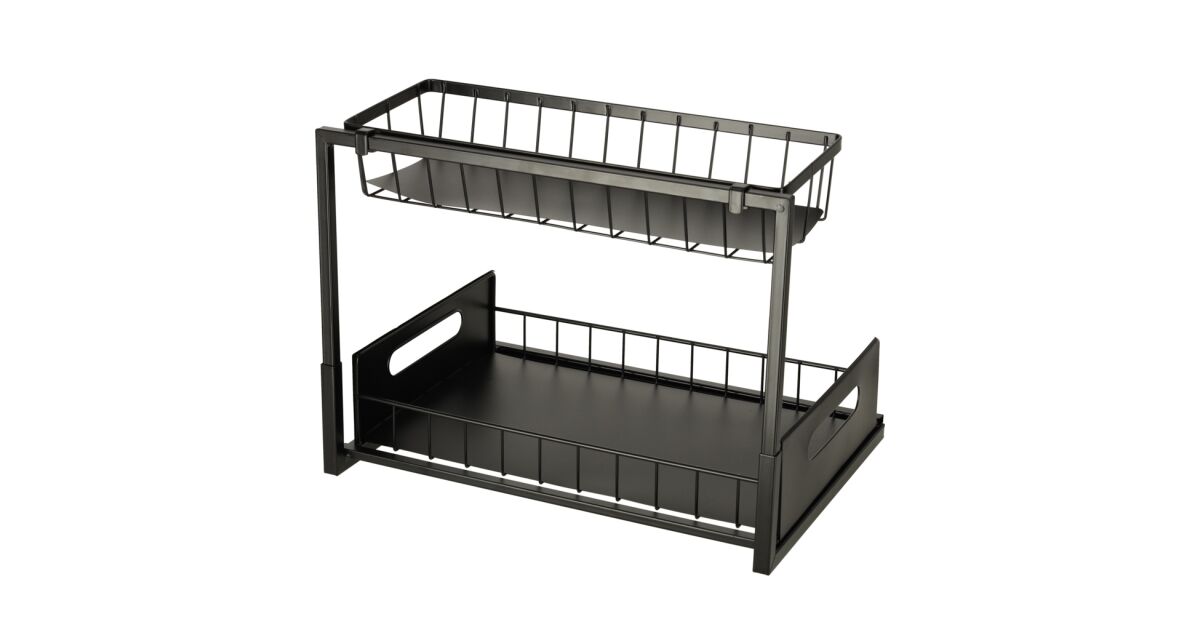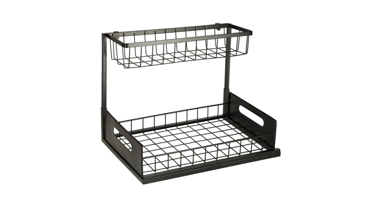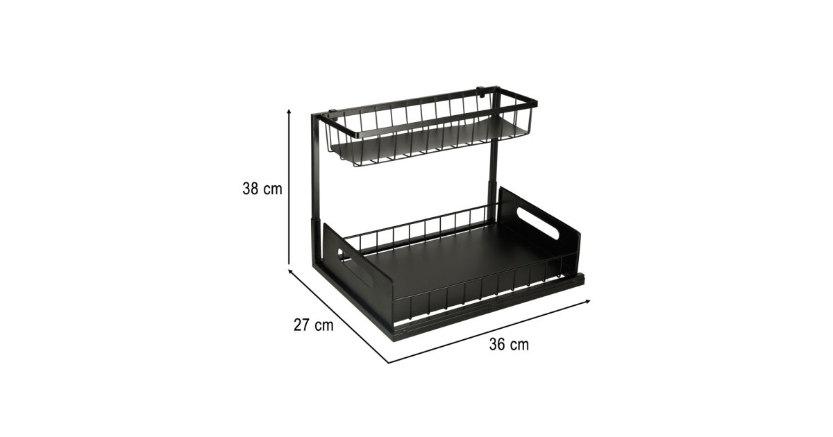 Dieser doppelte Organizer für unter der Spüle ist eine großartige Lösung, um die Ordnung in der Küche aufrechtzuerhalten. Dank seiner zwei Ablagen sparst du mehr Platz und hast alle deine Utensilien und Reinigungsmittel griffbereit. Die schwarze Metallstruktur verleiht der Küche ein modernes und elegantes Aussehen.