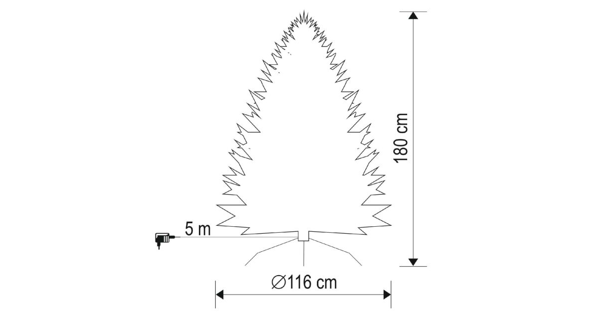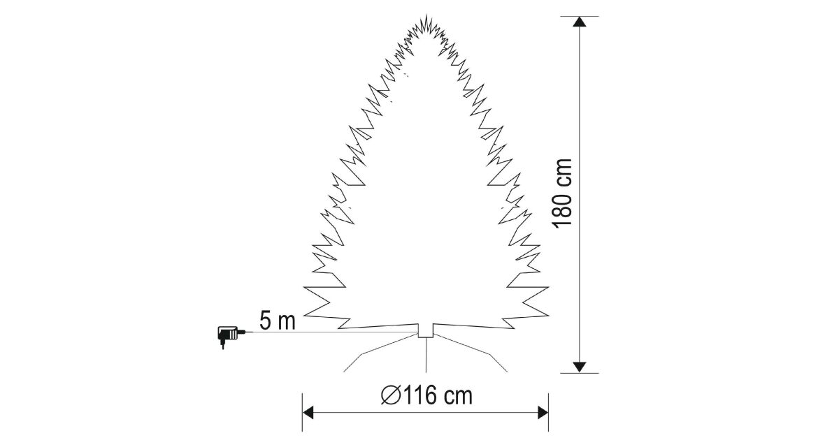 Der Baum hat einen Metallfuß, der auch nach dem Schmücken einen sicheren Halt bietet. Mit einer Höhe von 180 cm und einem Durchmesser von 116 cm ist er ideal für Wohnräume, Büros oder auch kleine Geschäfte - überall dort, wo eine gemütliche, festliche Atmosphäre wichtig ist.