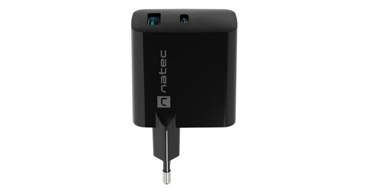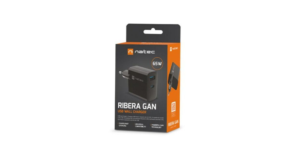 Adapter Natec USB-Ladegerät, Ribera Gan, 1X USB-A + 1X USB-C, 65W, schwarz Beschreibung