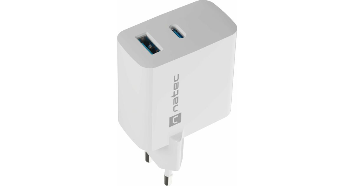 Adapter Natec USB-Ladegerät, Ribera Gan, 1X USB-A + 1X USB-C, 65W, weiß Beschreibung