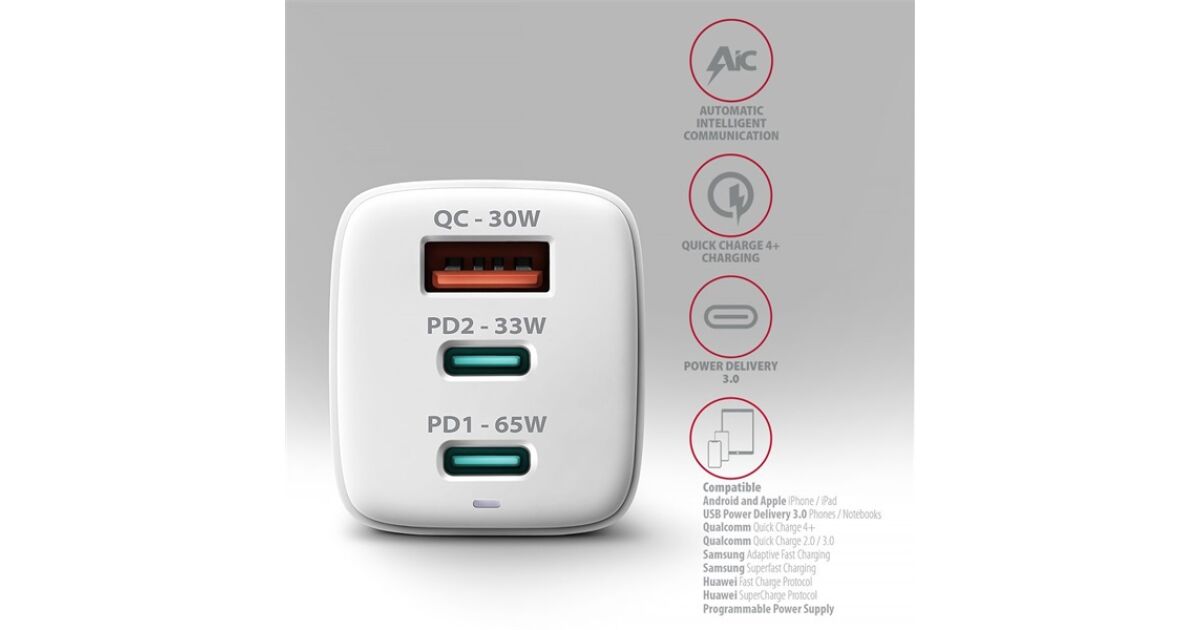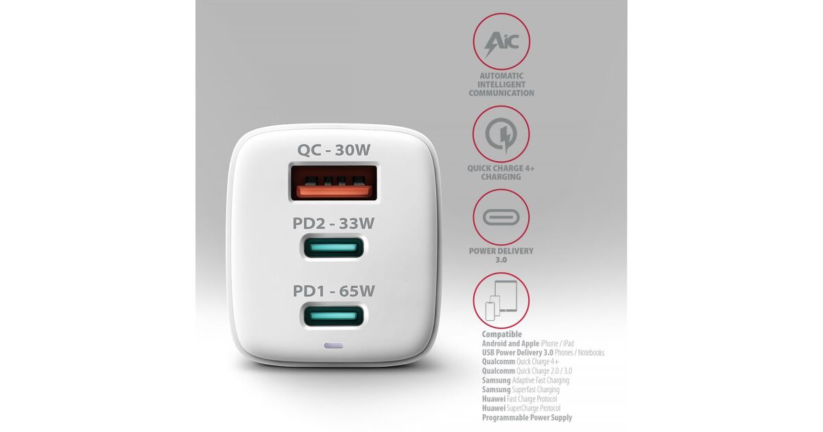 AXAGON ACU-DPQ65W USB-Ladegerät mit drei Anschlüssen: Schnell und sicher laden ⚡