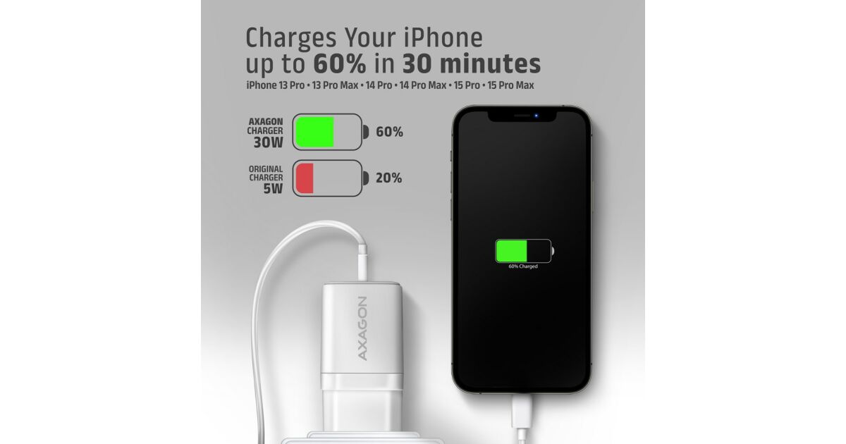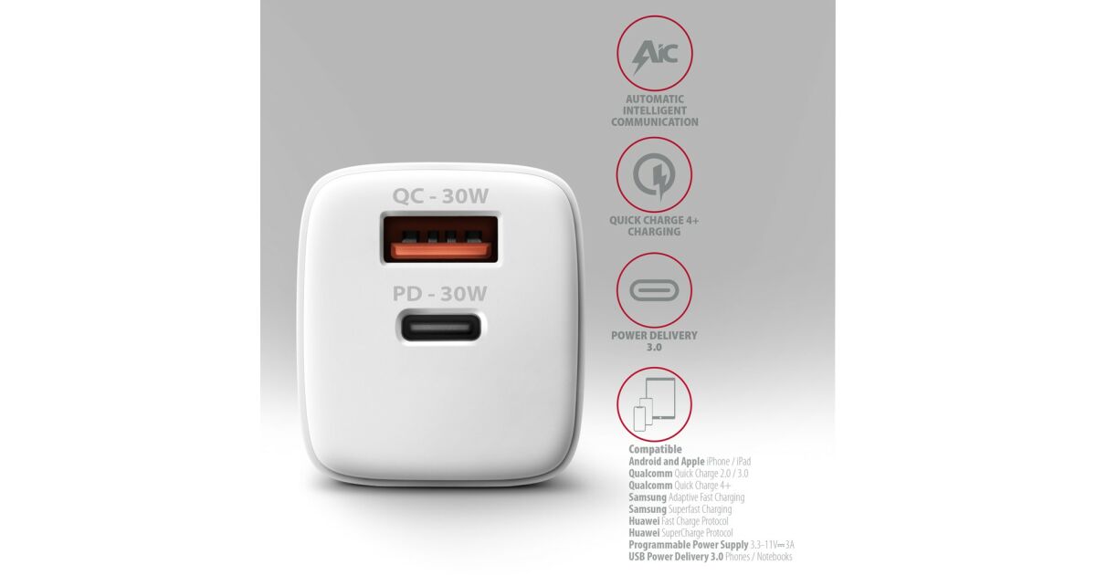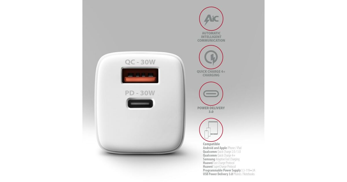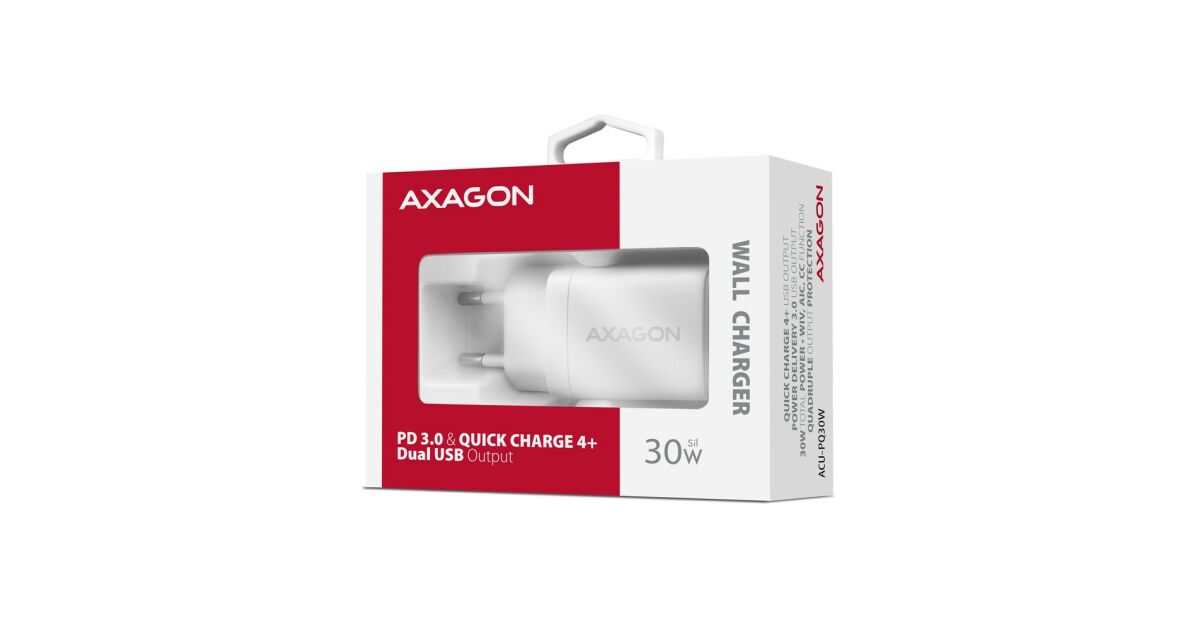 AXAGON ACU-PQ30W Ladegerät QC3.0,4.0/AFC/FCP/PPS/Apple + PD USB-C, 30W - weiĂ