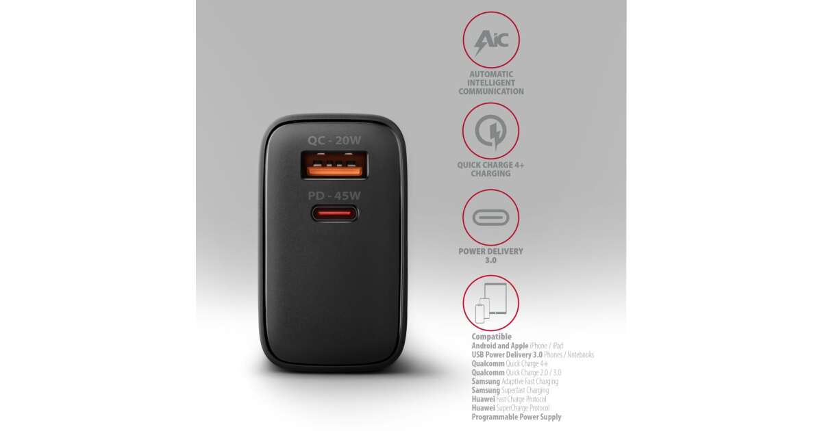 - ⚡ 45W Leistung: Lädt Ihre Geräte schnell auf.