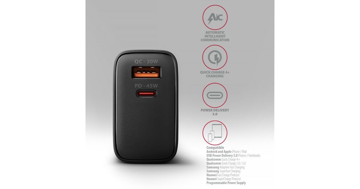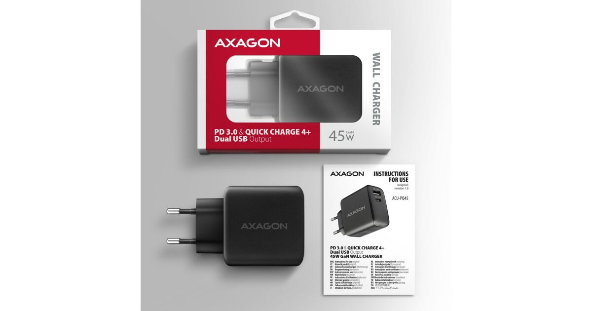 Mit dem Axagon ACU-PQ45 Netzteil können Sie sicher sein, dass Ihre Geräte immer richtig, schnell und sicher aufgeladen werden.