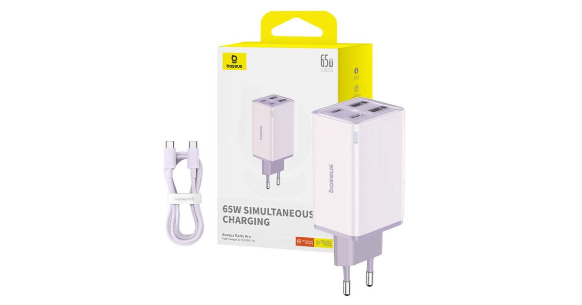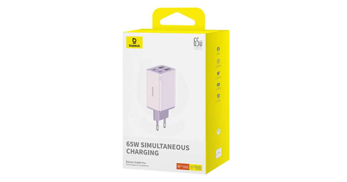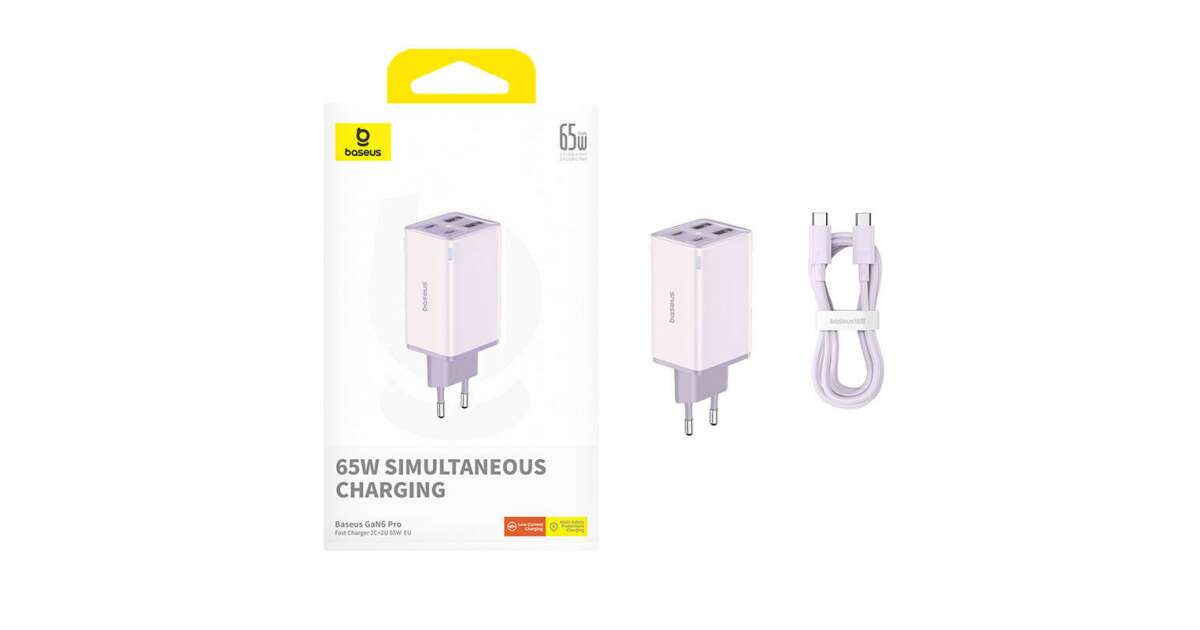 Baseus GaN6 Pro 65W Lila Schnellladegerät: Lade mehrere Geräte gleichzeitig superschnell auf! 💜