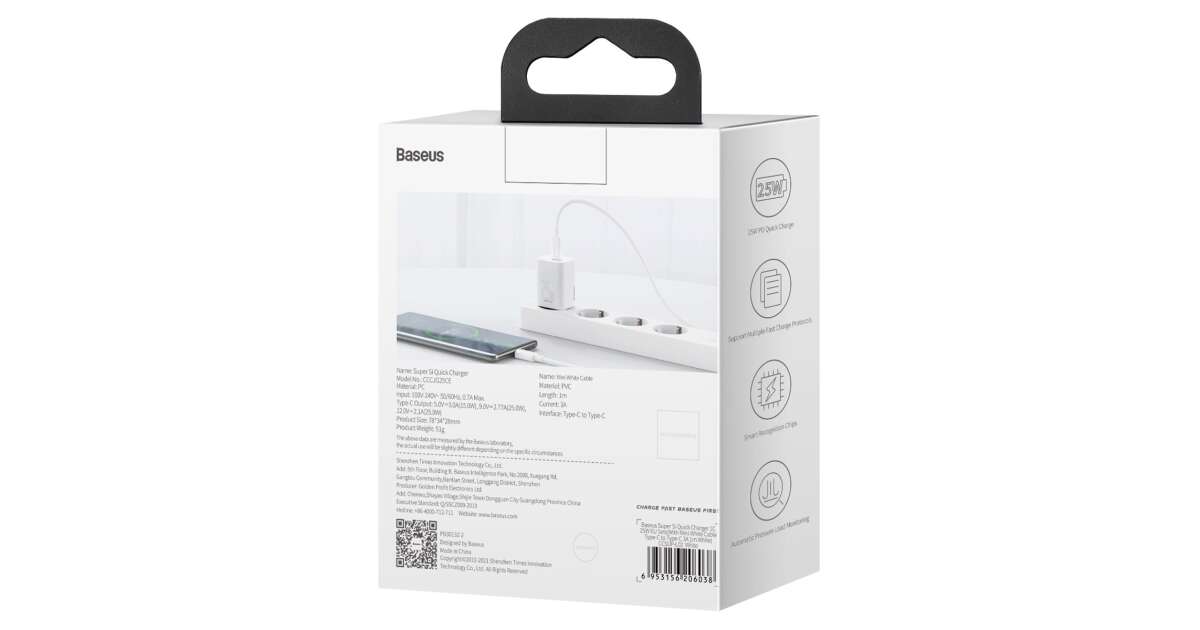 Baseus Super Si Netzladegerät Typ C - mit Typ-C-Kabel PD 25W weiß Beschreibung