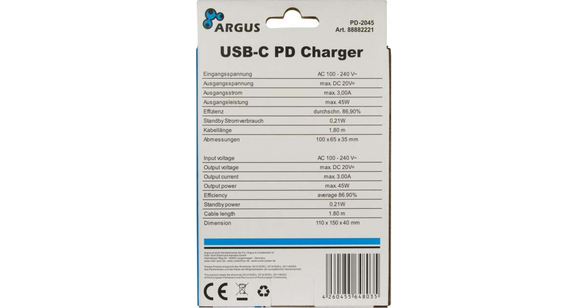 Dieses kompakte und praktische Inter-Tech PD-2045 USB-C Wandladegerät ist die perfekte Wahl zum Aufladen von Mobiltelefonen, Tablets und Laptops. Dank der Leistung von 45 W kannst du deine Geräte schnell aufladen und bist so immer bereit für die nächste Aufgabe.