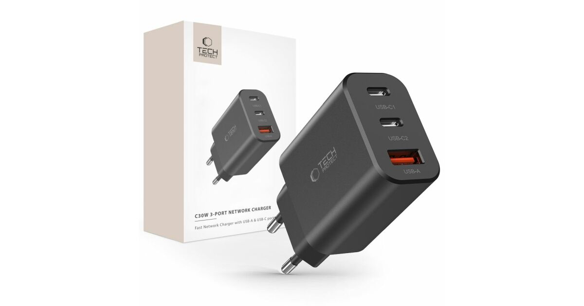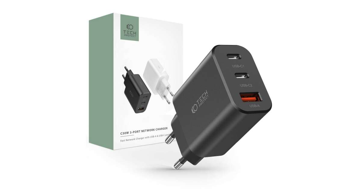 Tech-Protect NC30W Drei-Port-Schnellladegerät: Lade mehrere Geräte gleichzeitig! ⚡