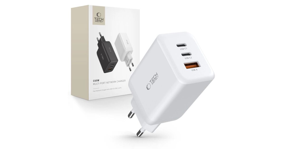 Tech-Protect 65W Drei-Port USB-Ladegerät: Die schnelle und sichere Ladelösung ⚡