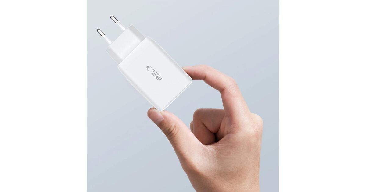 Tech-protect C65W 3-Port-Netzwerkladegerät PD 65W QC 3.0 Weiß Beschreibung